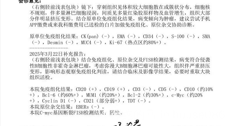 我35岁 去年7月份跑完步 膝盖疼痛 以为是运动 原因 没有理会 后来越来越厉害 去当地医院做了检查 医生说尿酸高 当时开了一点尿酸的药 吃了以后脚就不疼了,就一直以为是尿酸引起的 但是一停药脚还是一样痛  只能去大医院检查 检查了一两个月等各种结果 后来确诊了 当时真的很无助 今年6次pol+R+CHP 两次R+18次放疗