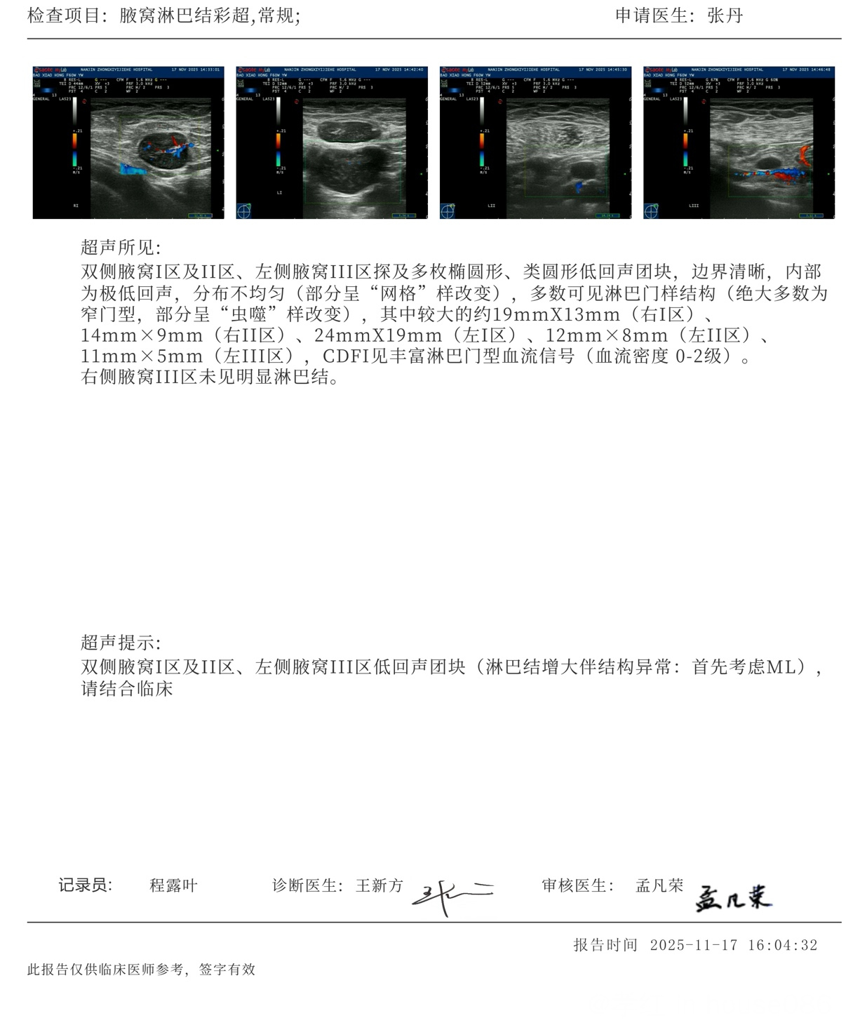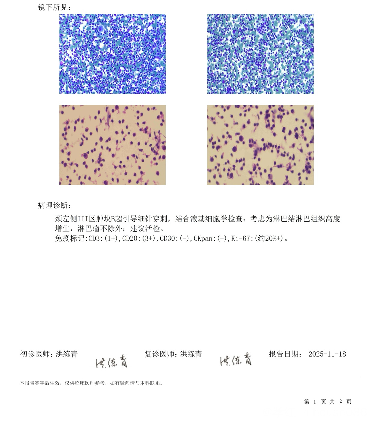 我妈妈60岁,医生说淋巴瘤,还没活检,麻烦帮忙看看大致方向,感谢!!!