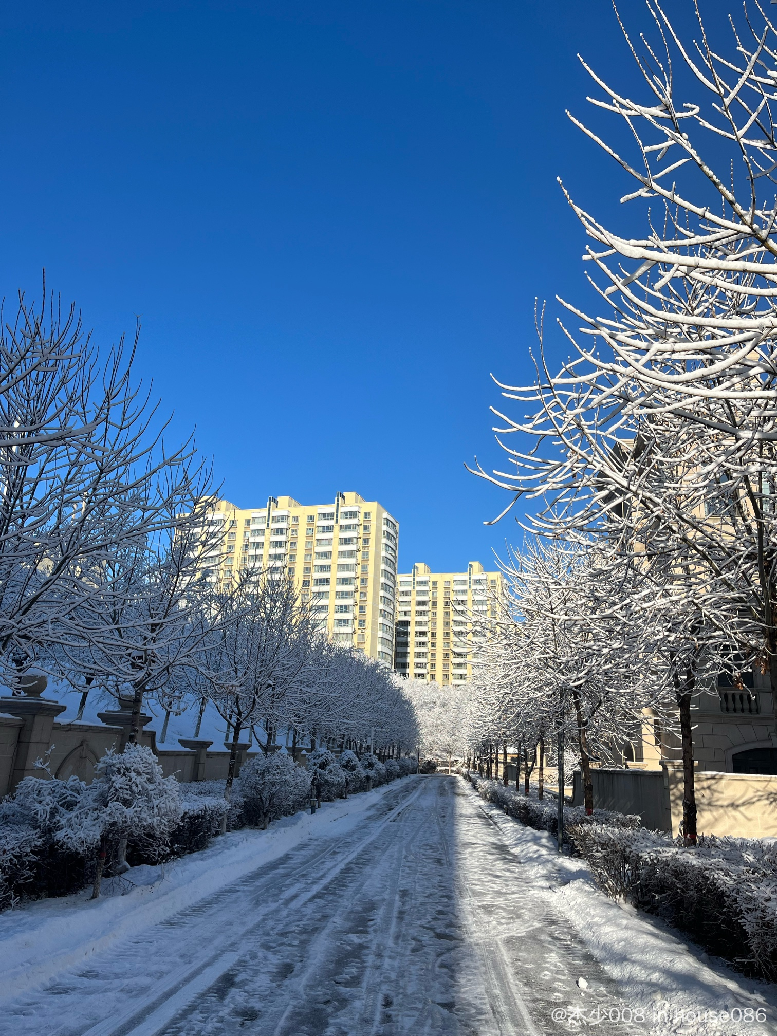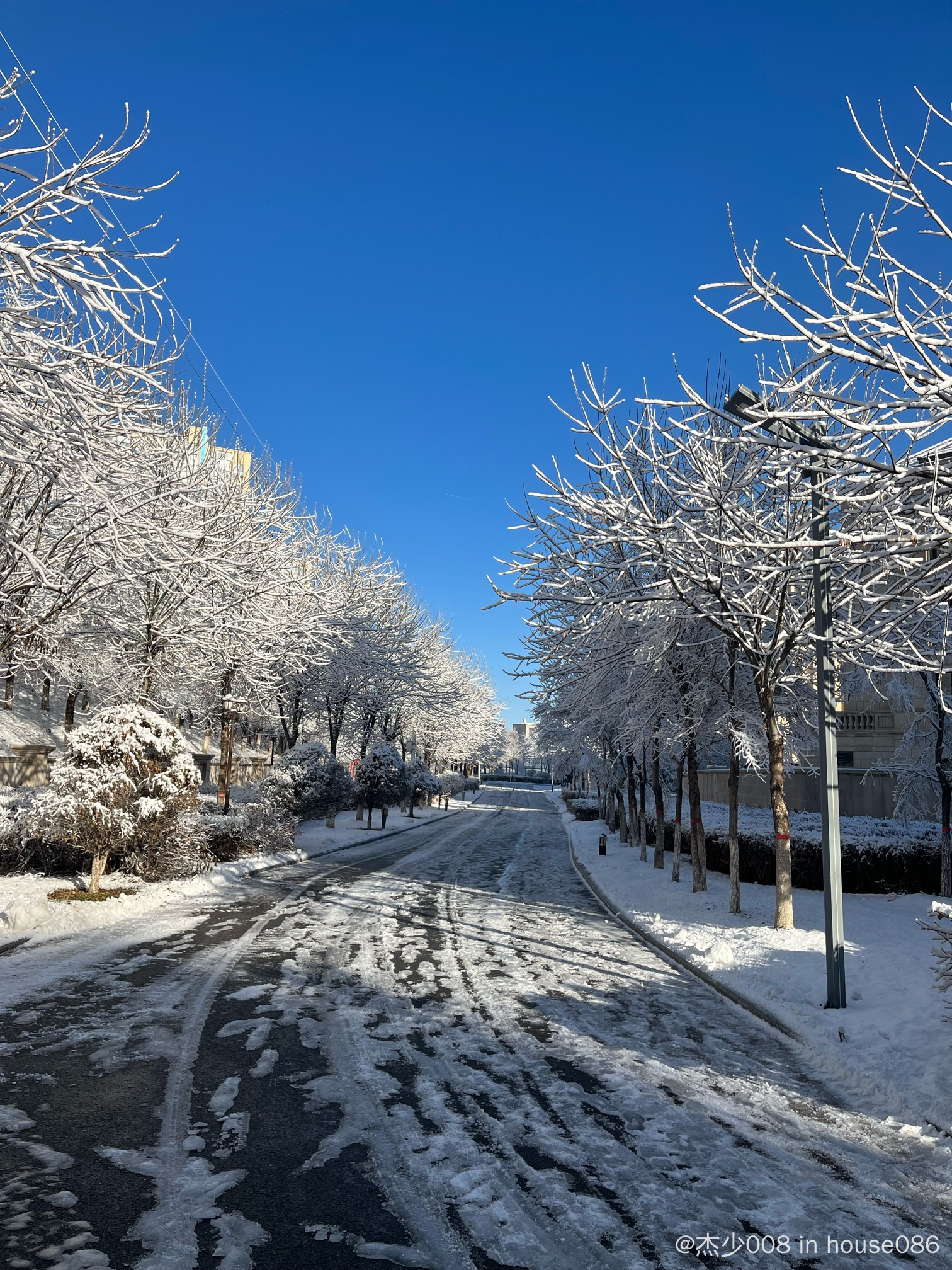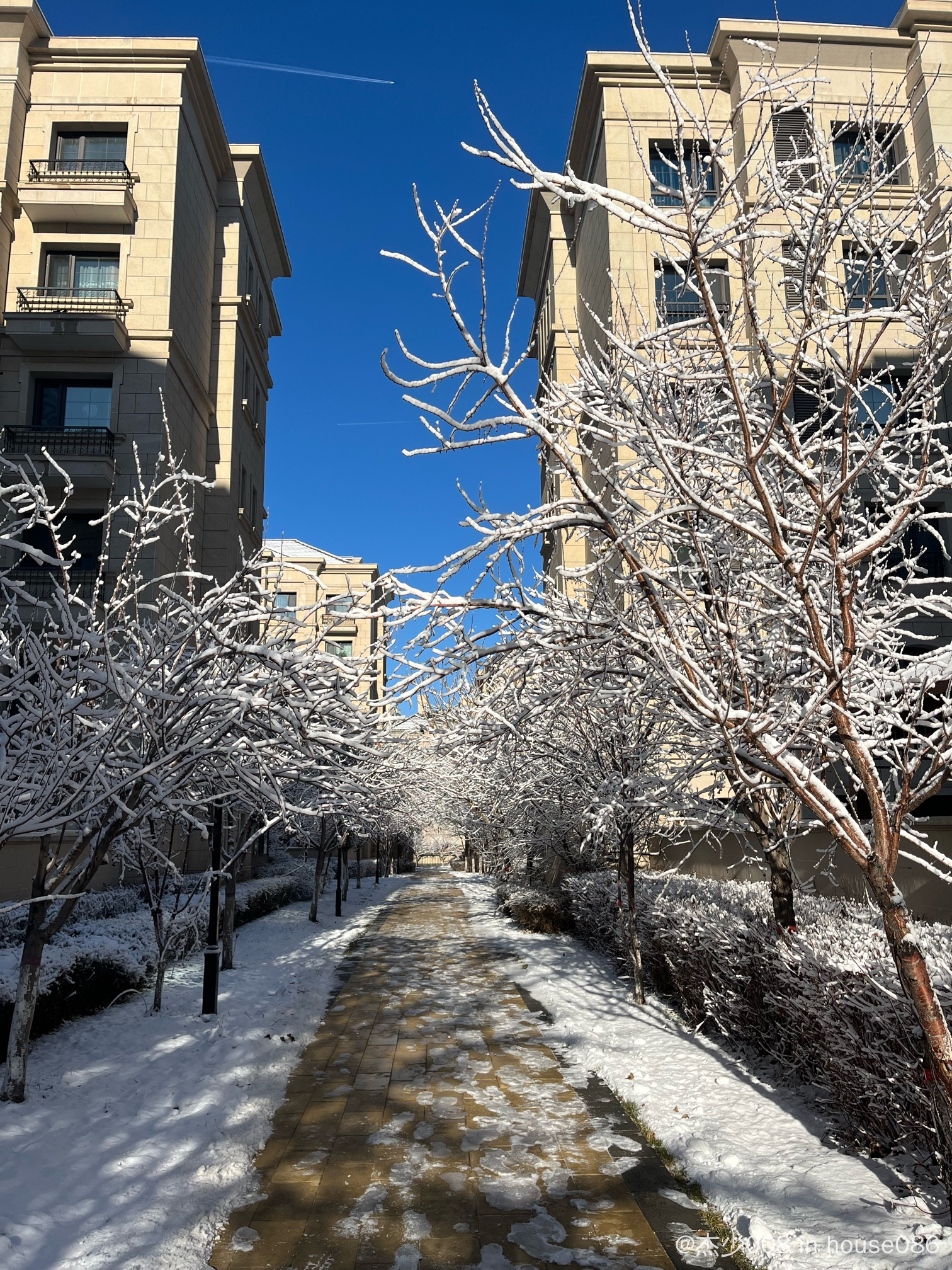 昨天晚上乌鲁木齐下雪了,今早在小区里拍到的雪景