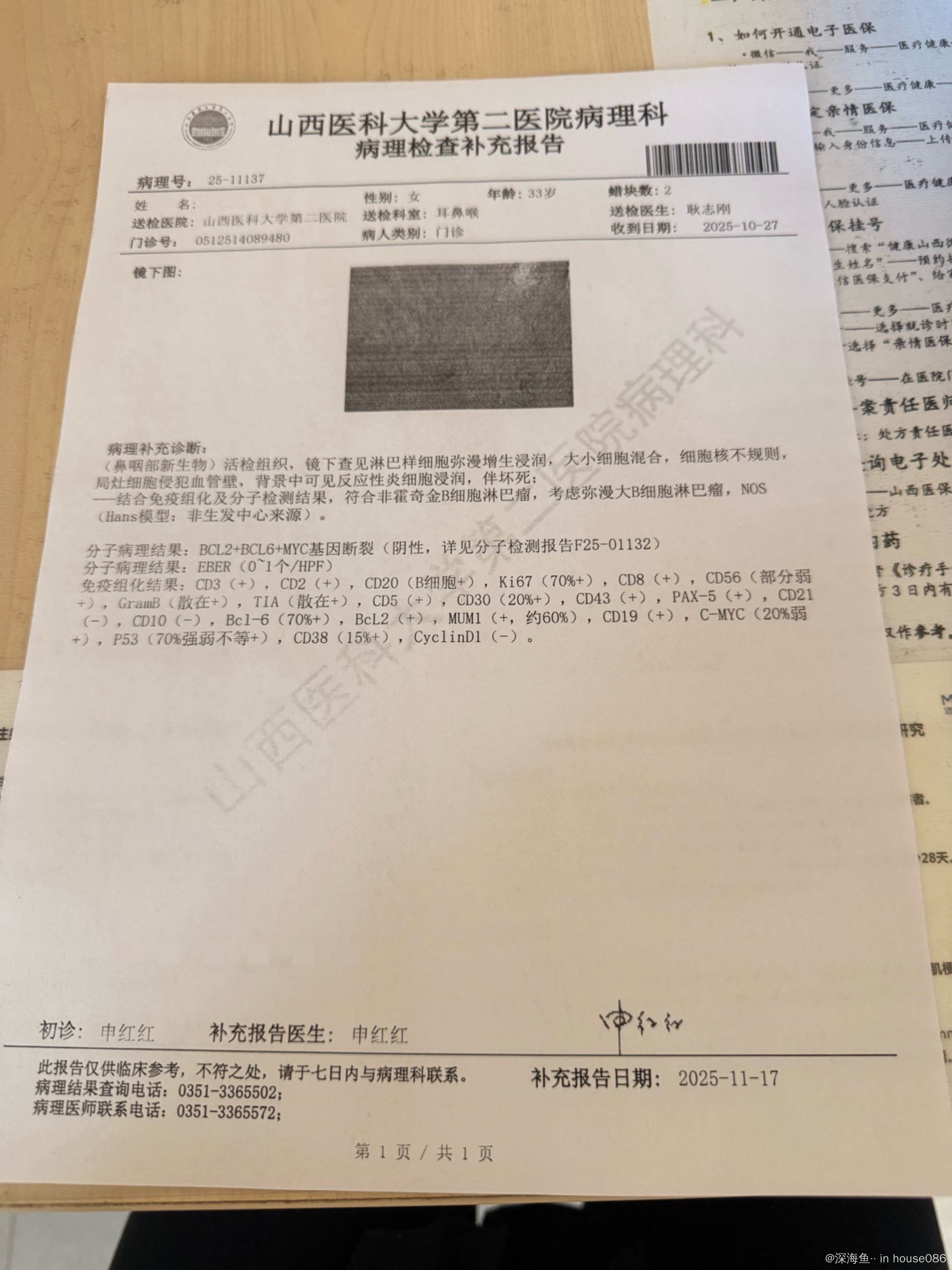 我老婆也是33岁,今天去6疗的。心态要放好,年轻治愈率很高的。