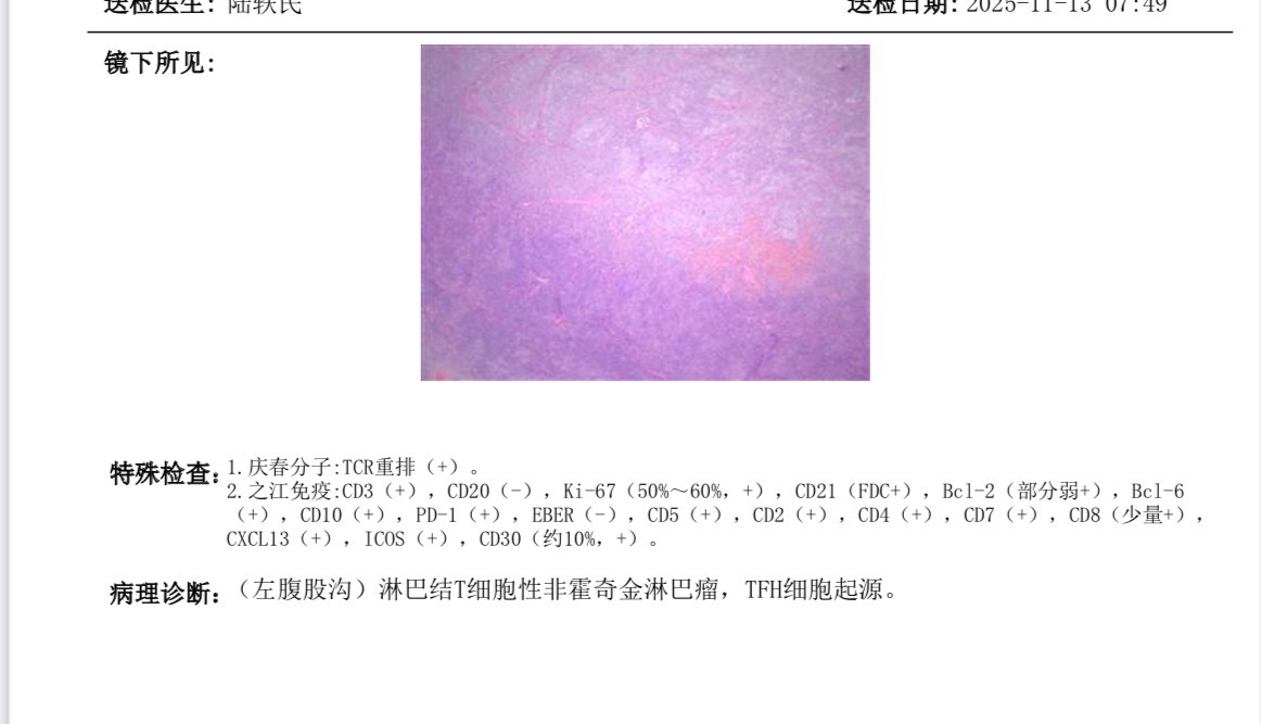 这个相当于还没有具体分型,抓紧病理会诊确定分型吧。t细胞是不好治但也不是没得治,加油。