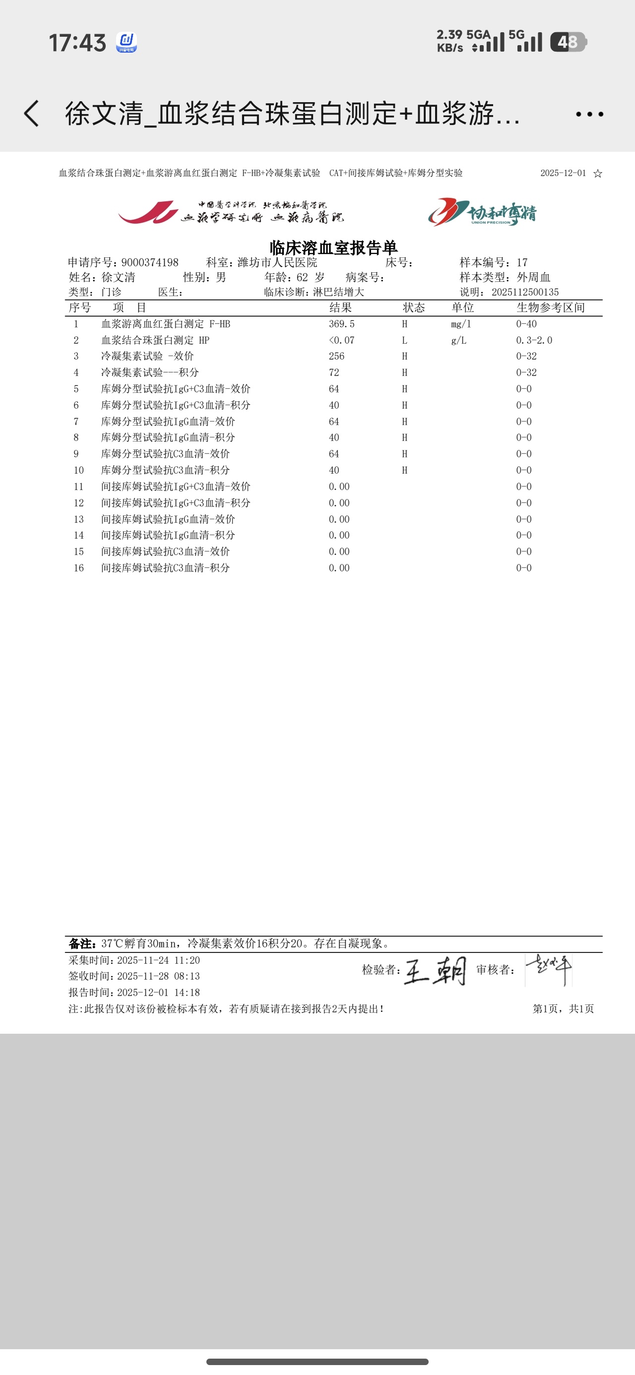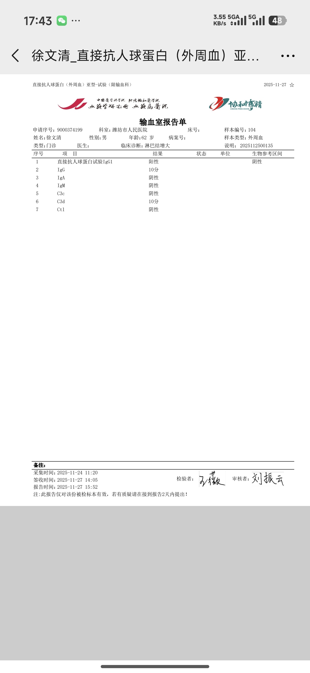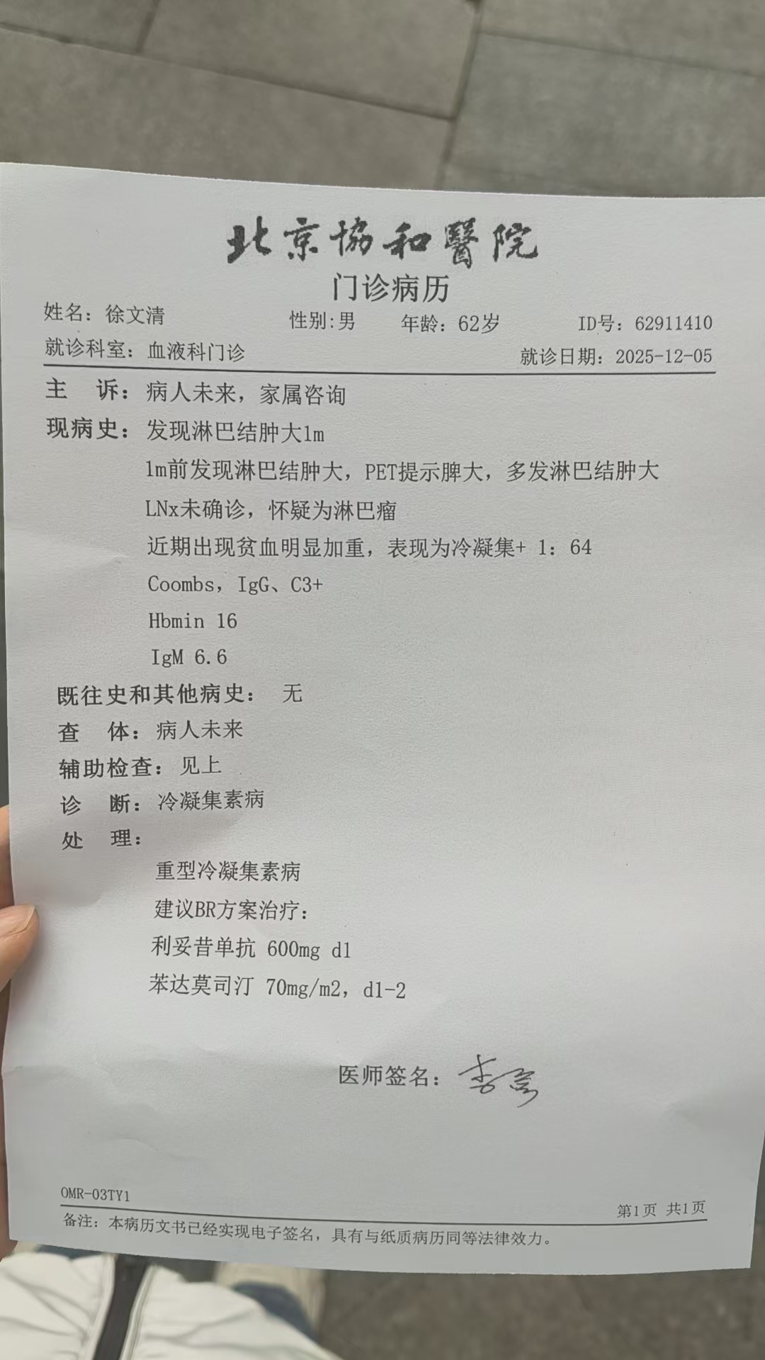 骨髓流式没见到,免疫固定电泳也没见到,根据描述,冷凝集素病(CAD)的诊断结论应该问题不大,但不知是否排除了冷凝集素综合征(CAS)的可能性,因为CAD无法解释淋巴结肿大,而CAS是继发于其它疾病例如华氏巨球蛋白血症的一个并发症。不过,BR方案既可以用于治疗CAD也可以用于治疗CAS。