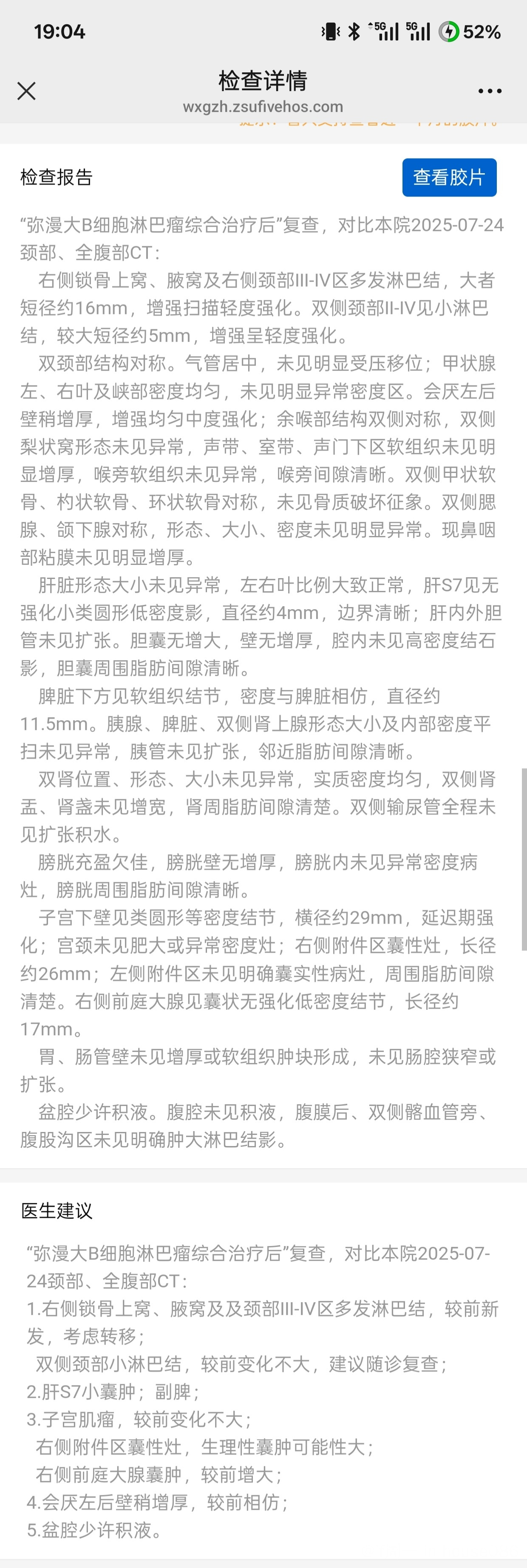 我妈妈也是 弥漫大b放化疗过五年了 昨天检查 增强CT显示双肾多发强化减低灶 倾向淋巴瘤 不知道该怎么近一步检查