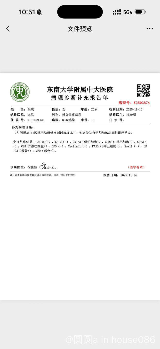 送一下病理会诊,当前的病理不能完全除外小b淋巴瘤,给坏死性淋巴结炎的结论有些存疑