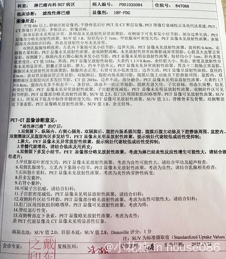 首次治疗:滤泡淋巴瘤2级4期 第五次化疗前做的pet-ct 结果