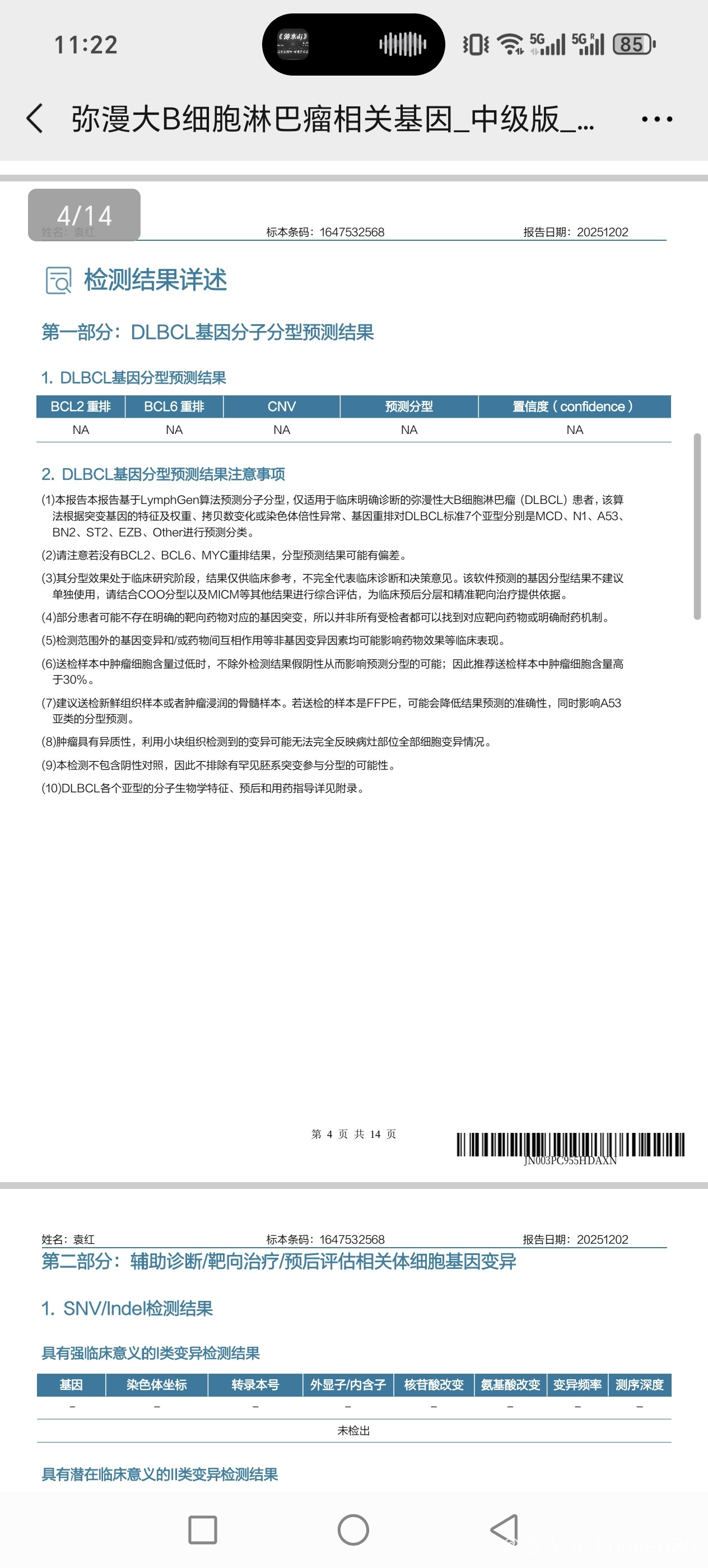 求助大神,做不了基因层面的分型,就只能按照hans分型去做处理对吗。这个“空白”报告本质上属于预后利好还是利空呢
