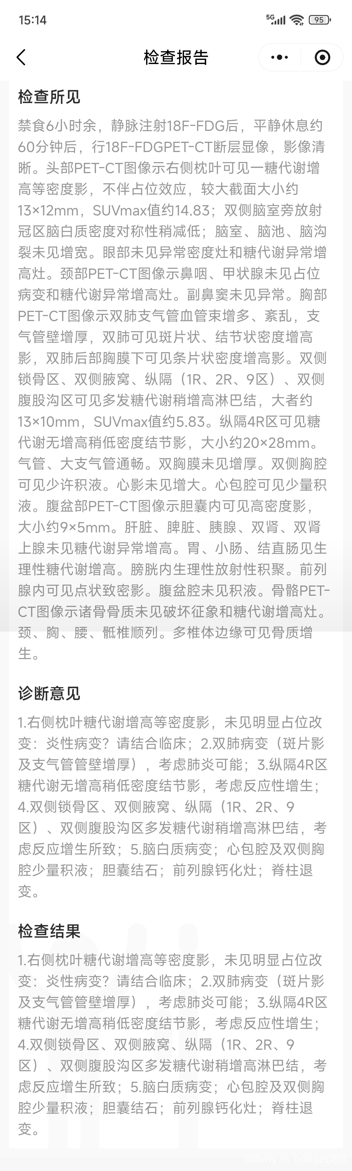 anl 发表于 2025-12-17 15:59 头部肿瘤 要看增强核磁。如果能穿刺病灶更好 尽量不开刀。上大剂量甲胺蝶玲前可以穿刺。来不及就直接上吧。找血液科医生会诊。