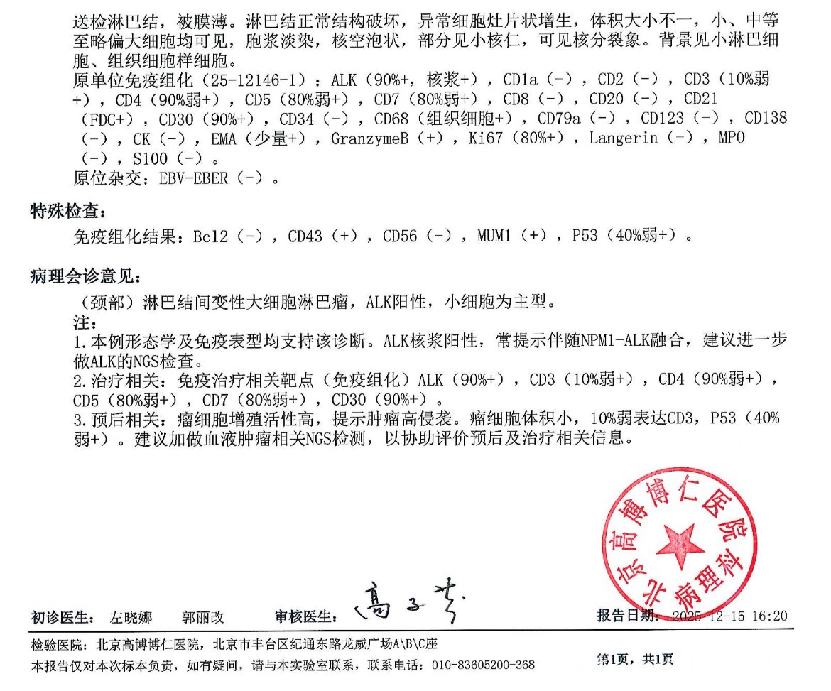 我在网上搜到也说ALK阳性的比较好治疗,但就是这个病理分型是小细胞的不太好,复发率会比普通型高
