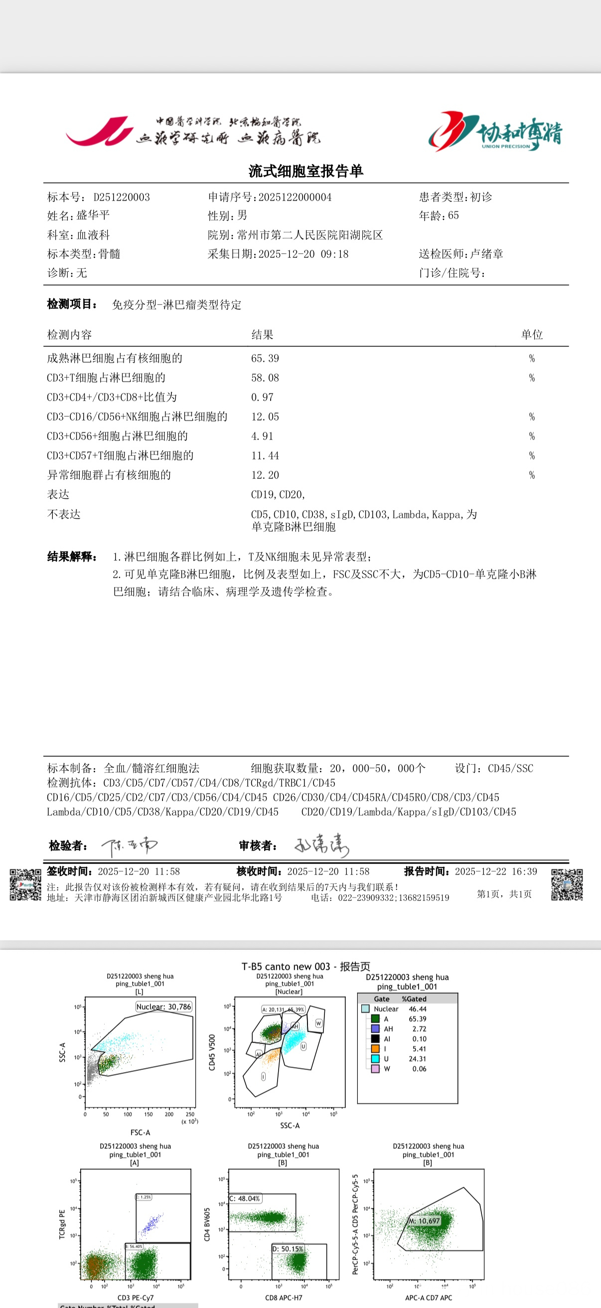 橙色雨丝 发表于 2025-12-25 09:09 小B细胞淋巴瘤,具体类型待定。