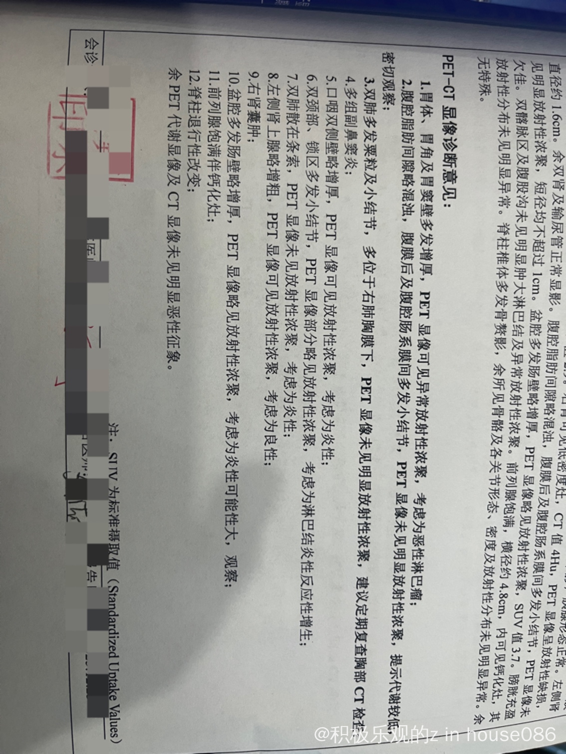 最早11.28一次胃镜,胃窦处有溃疡,平扫ct,显示胃窦壁增厚模糊,周围稍大淋巴结影。这个是12.22的第一次petct结果。suv胃窦处最大为4.8。