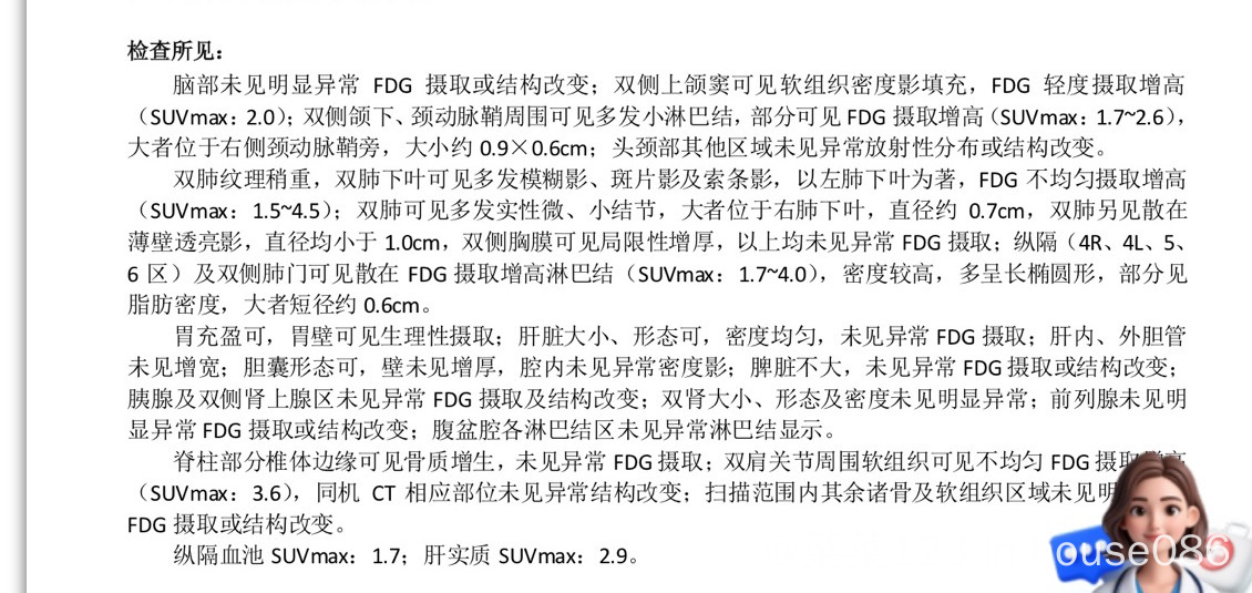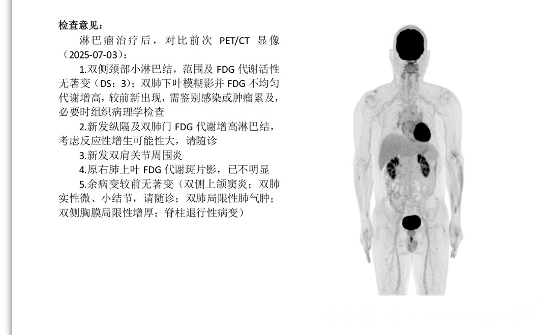 套细胞淋巴瘤:新发的双肺门摄取增高1.7~4短径0.6,考虑反应性增生。同样新发的双肺下叶摄取值高1.5~4.5需要鉴别是不是浸润?这两个提醒事项的依据是不是写反了呀?有懂的友友吗
