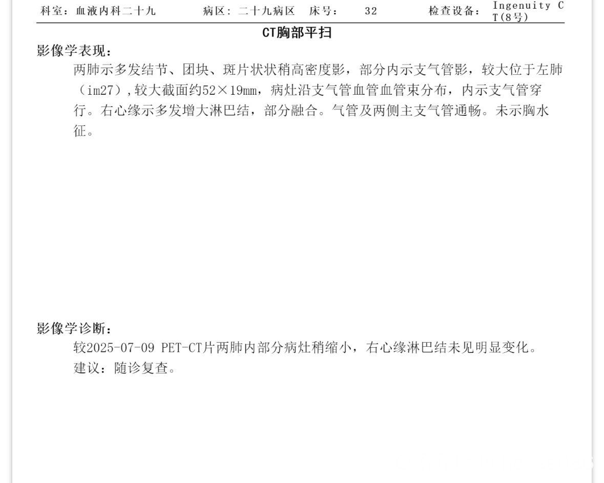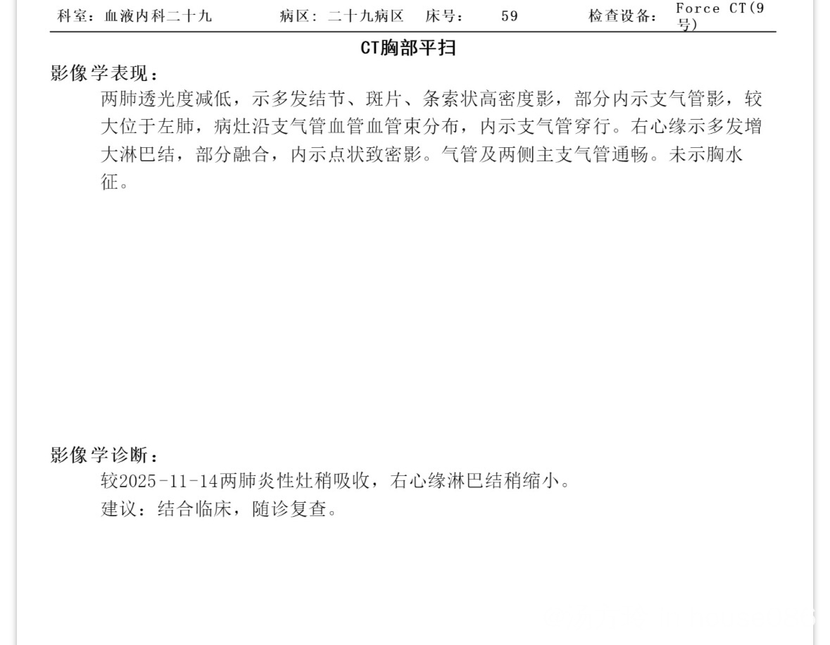 为:泽贝安单抗595mgd0,环不磁酷胶1188mg d1,长春地辛4mg dl,斜化泼尼松100mg d1-d5,辅以止吐、水化城化等治疗。 治疗方案 六次化疗结束,化疗中配合奥布替你治疗 最后两次CT显示感染,现在不知道怎么样了,治疗方案对不对,请大神帮忙看看