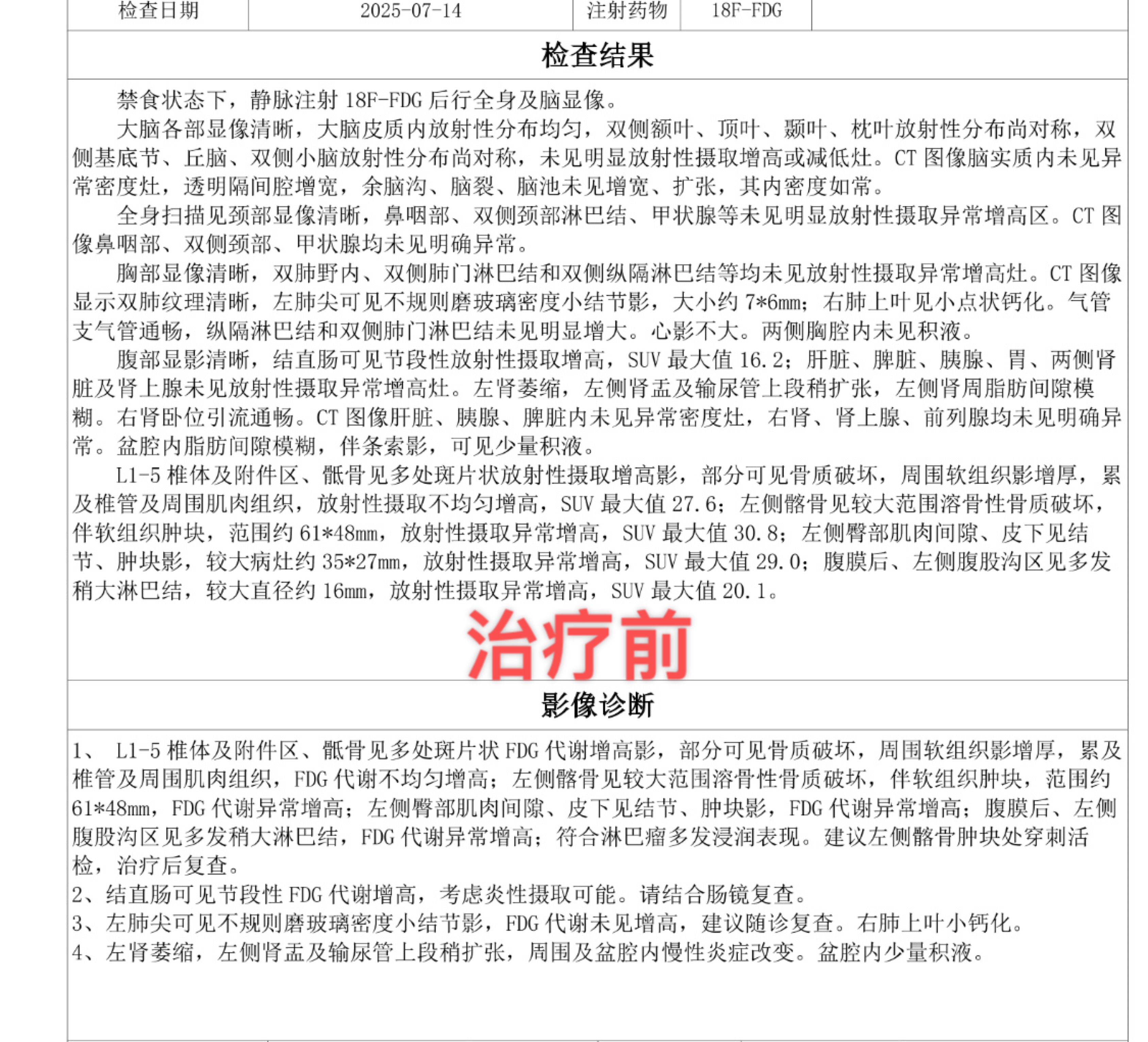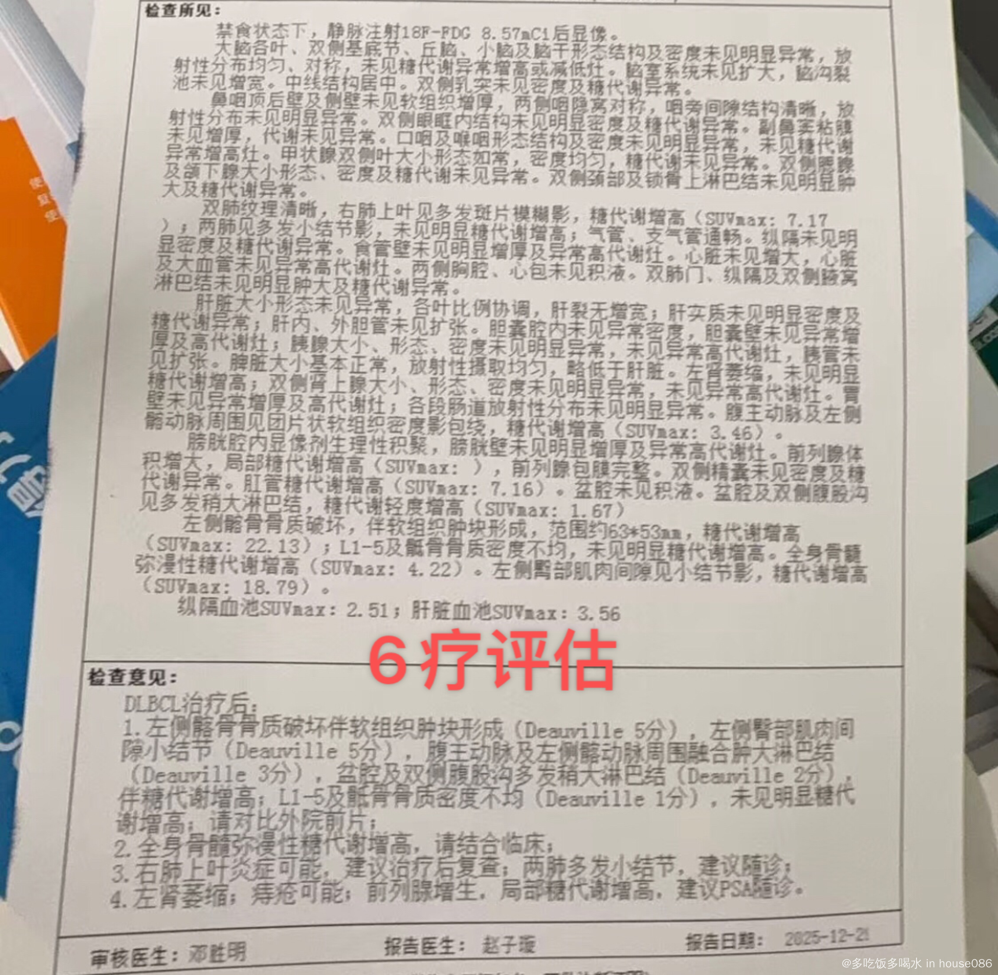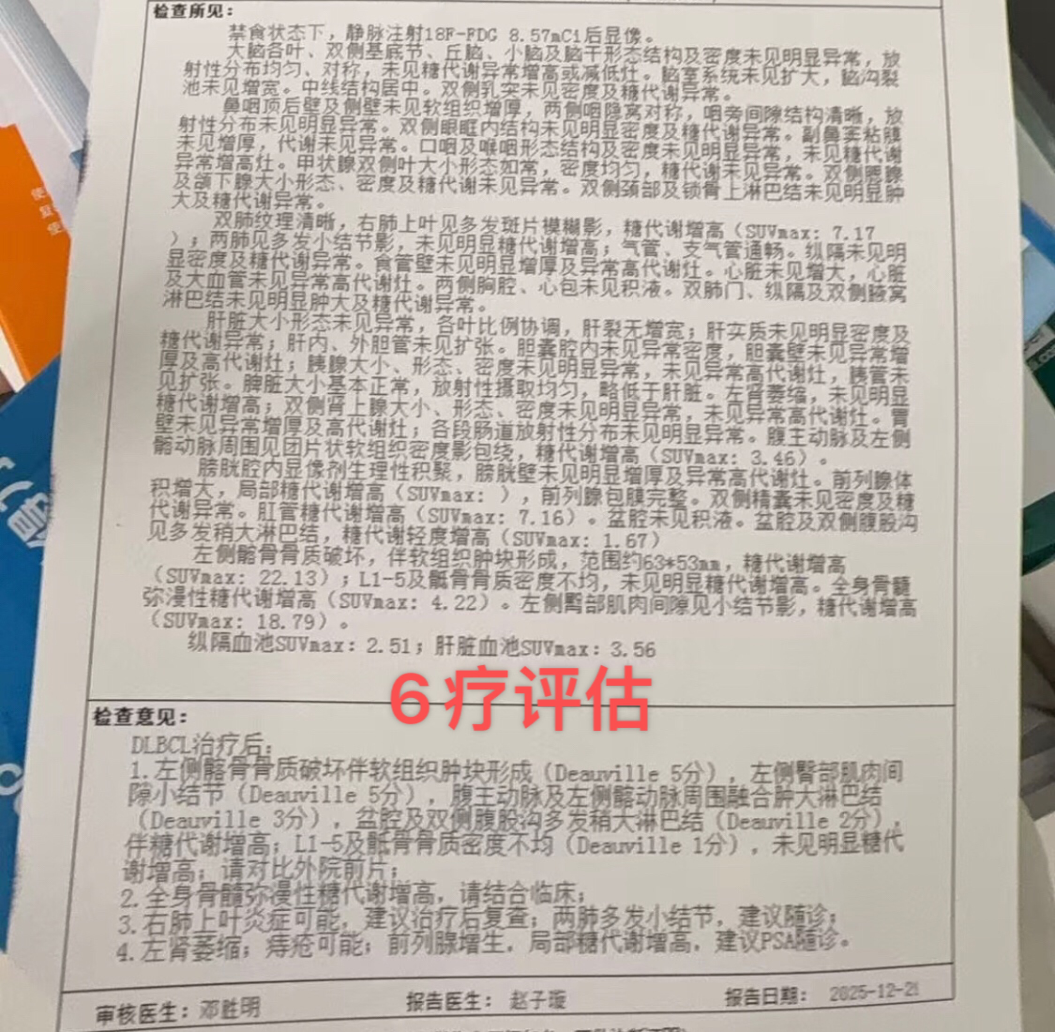 患者实际38岁,男,弥漫大b。2021年确诊 经历化疗及自体移植后pr,之后参加cd19 cart临床实验。之后一直观察。2025年8月复查发现疾病进展后入组双抗+gemox实验组。目前已完成6个疗程。 12月29号7疗前做的pet,评分5分。