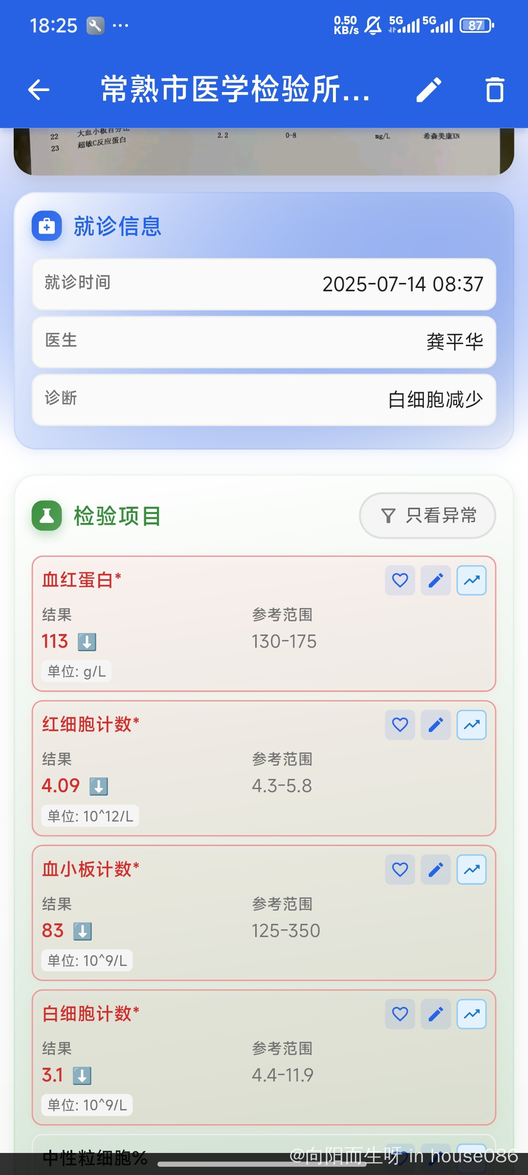本人身患肺癌3年,化验检查积攒了很多的病历,之前看病历的异常指标数据都是用笔和本子来记录的,看指标趋势很不方便,经一个病友的推荐,发现了病历助手app很好用,病历管理+用药提醒,看了评价也是百分百好评,大家有需要的话,苹果手机可以从苹果商店下载体验,安卓手机可以扫码最后一张图下载安卓app。