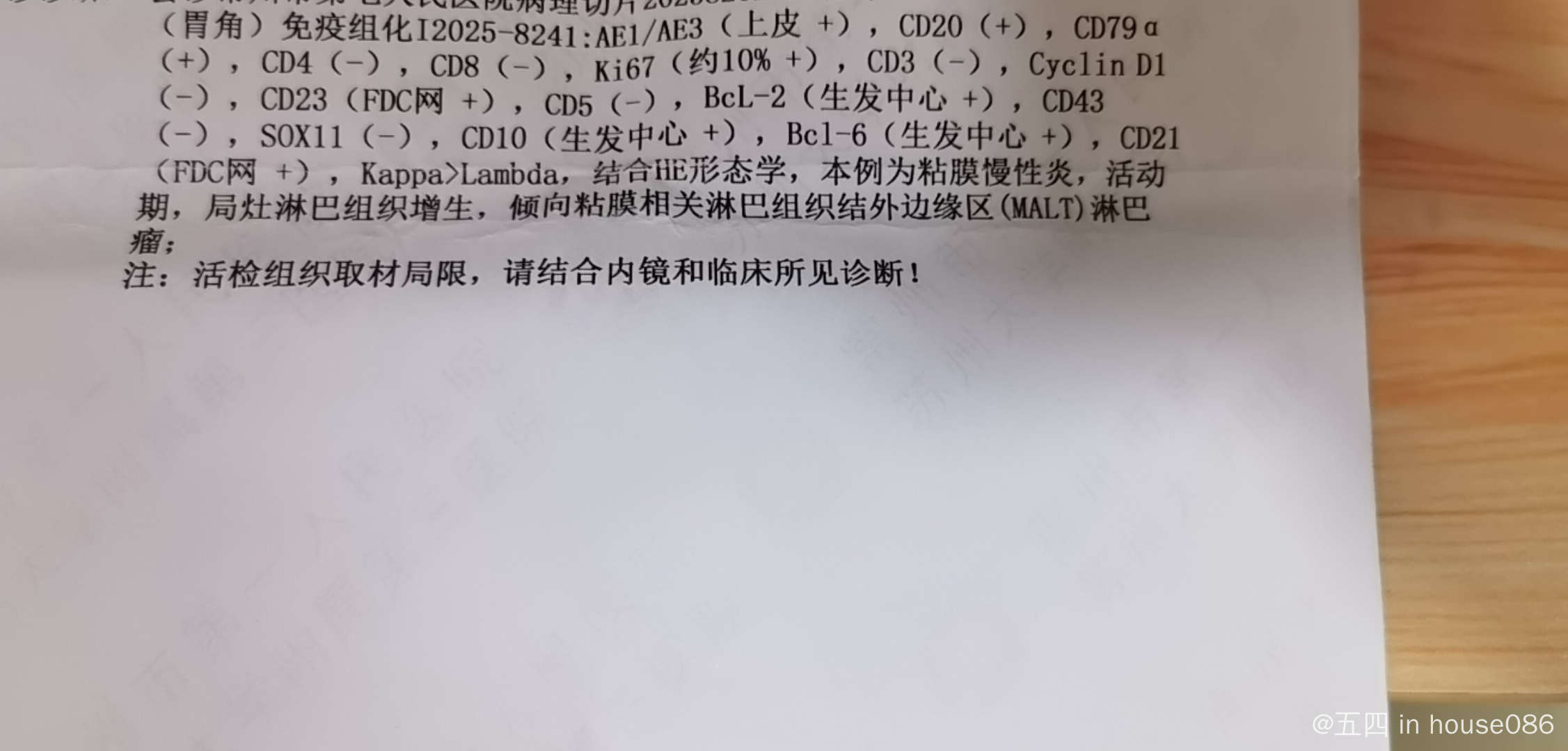 在哪个医院看病?如今影像学及胃镜检查,增强CT检查考虑胃malt淋巴瘤,基因重排检查结果如何?HP检查是否阳性?抗HP治疗效果如何?抗HP治疗后胃镜检查胃局部活检后病理是炎症,也可能是没有取到病变部位,定期复查活检后病理看吧,