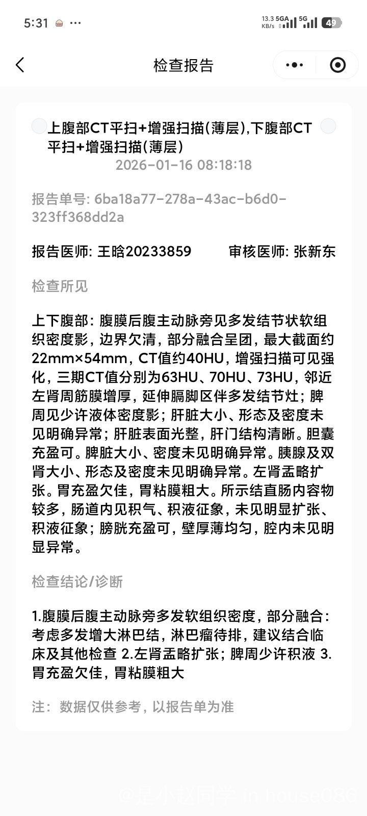说是怀疑淋巴瘤等着住院手术看病理啥结果吧