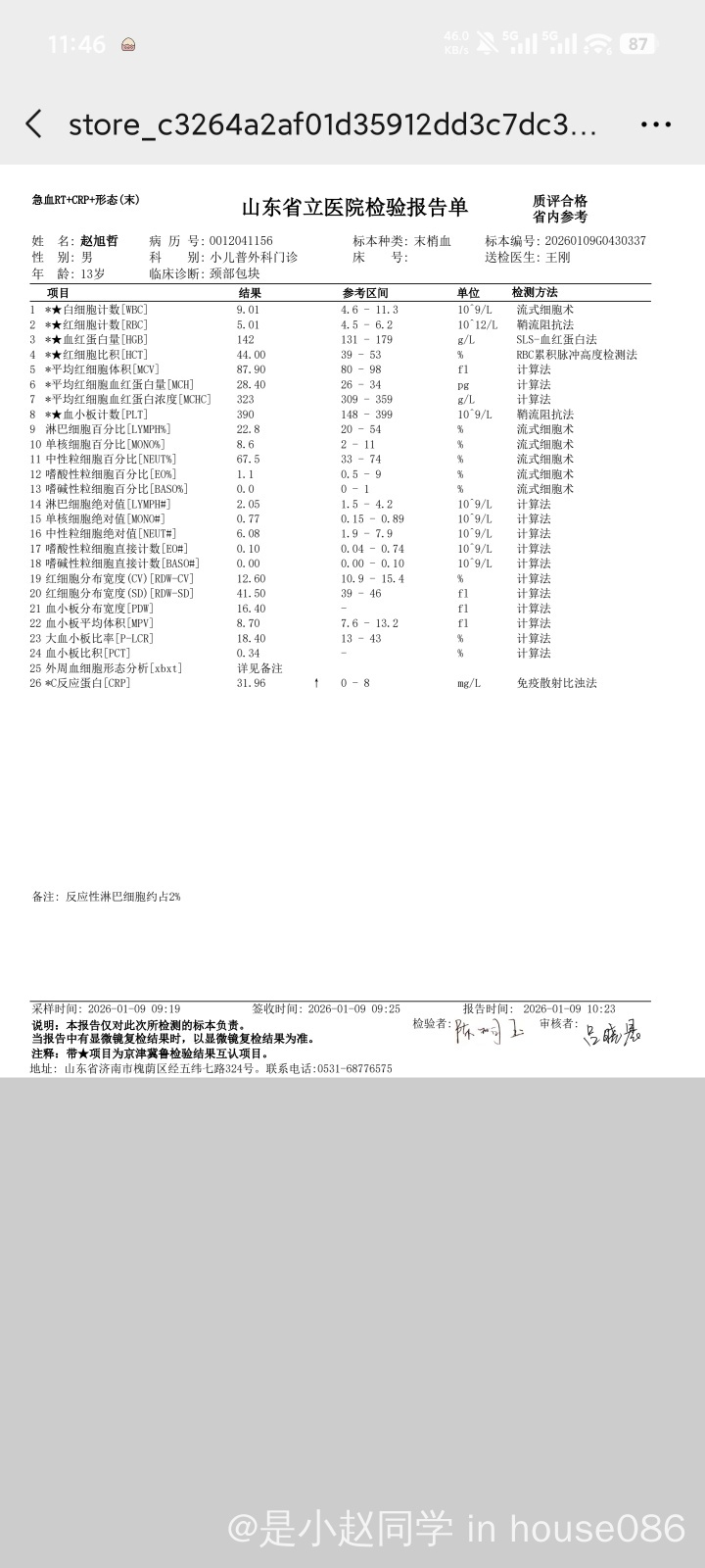 当时挂的小儿普外,因为没往淋巴瘤上想,都住上院要做手术取结节活检了,谁知道又说咳嗽有痰不能全麻,就回家打针治咳嗽了