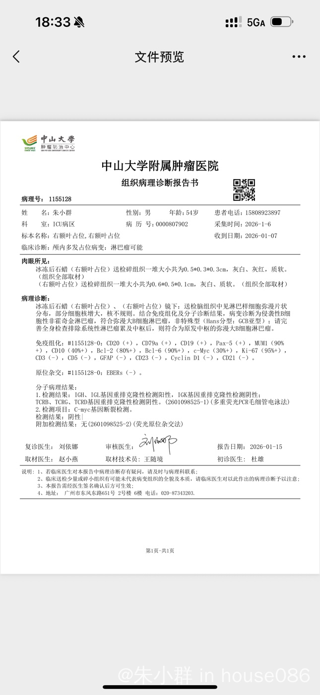 tracy林 发表于 2026-01-18 17:19 可以治,我先生一样情况,也在中肿,16 号开始第一次化疗了。