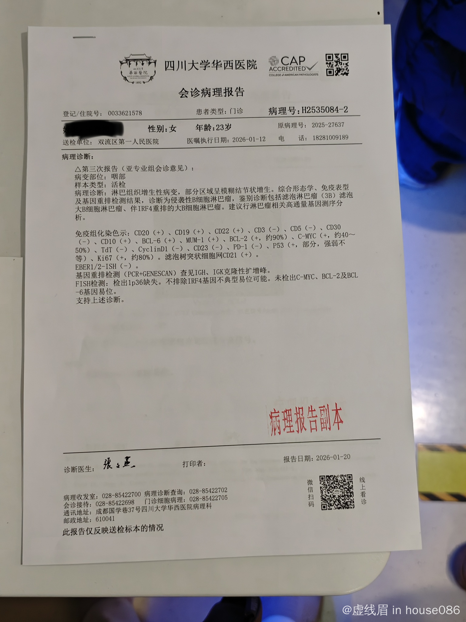 华西的fish结果出来了,这个报告是什么意思,我的淋巴瘤还是没有明确亚型吗,会不会这次高通量基因分析后还是没有明确的结果,真的好焦虑