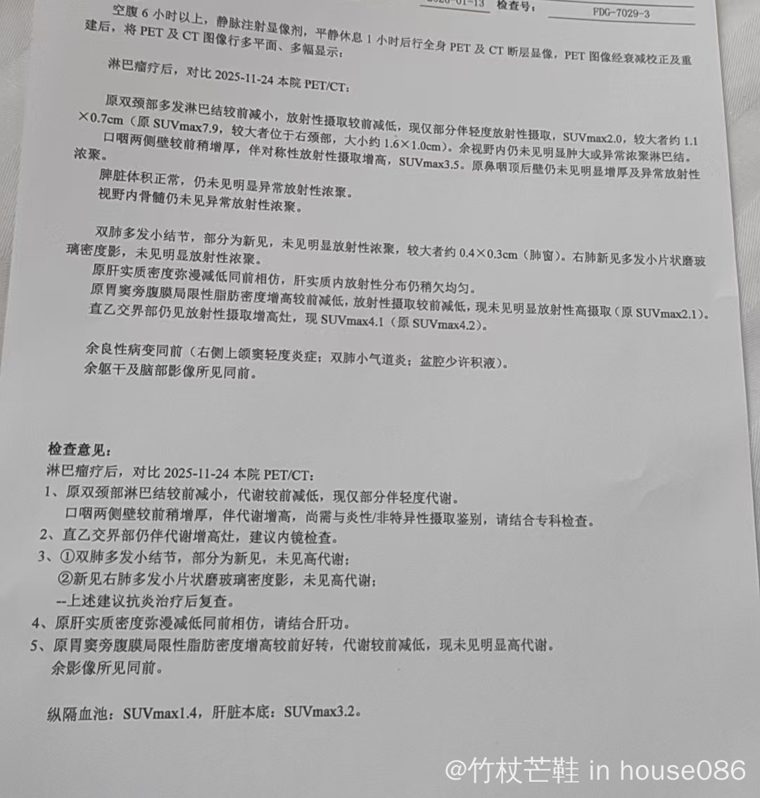 这个PET是几次化疗以后做的?放疗照哪里?PET报告大概的意思是