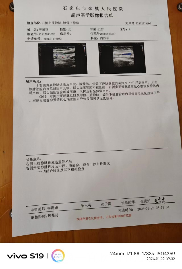 我母亲62岁是弥漫大b细胞瘤患者,手臂植入输液港,上个月第一次化疗,回家后5天手臂憋胀,去医院检查发现有血栓形成,医院低分子肝素治疗两周,复查还是有血栓存在,想知道这种情况应该怎么处理呀,真的比较害怕血栓呀