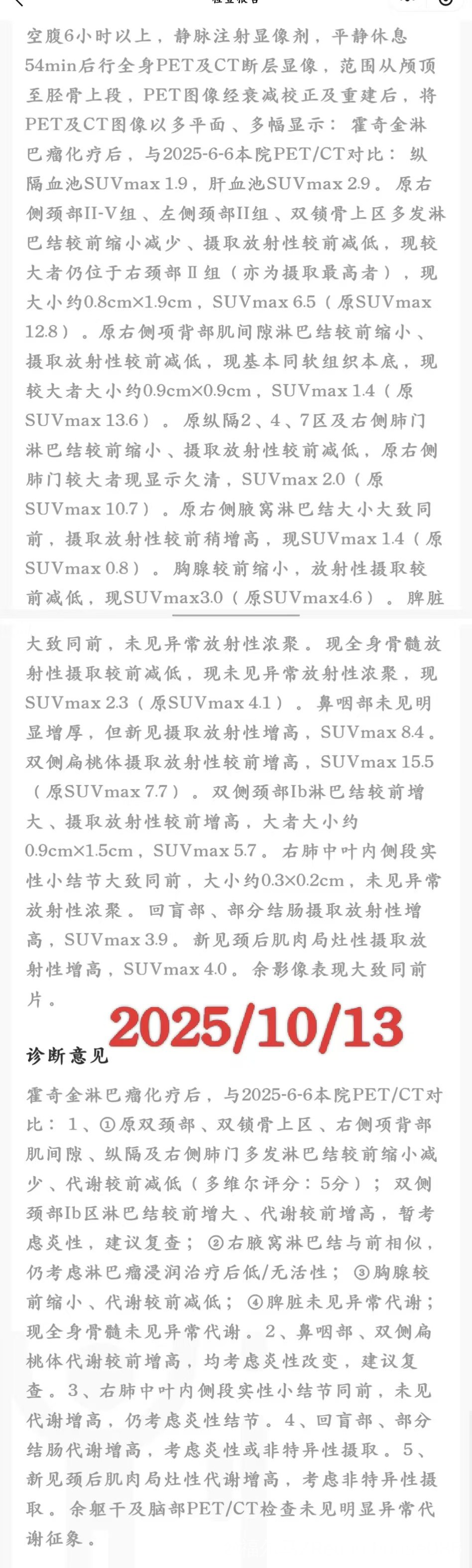 二线用bv➕pd1,计划6疗在四疗pct评估效果pr后加至八疗,最后依旧是pr,医生建议自体移植。