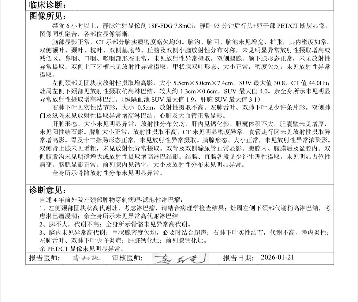 患者42岁,2022年查出滤泡淋巴瘤,当时分级分期是3A3期,然后医生建议观察。最近一年多持续进展,达到治疗指征。医生说因为摄取值异常高,不是滤泡该有的,怀疑已经转化,建议使用pola-g-chp方案,请教大神@橙色雨丝 ,这个方案合理吗?因为分期早,基本全自费。照片分别是22年和26年的检查结果。