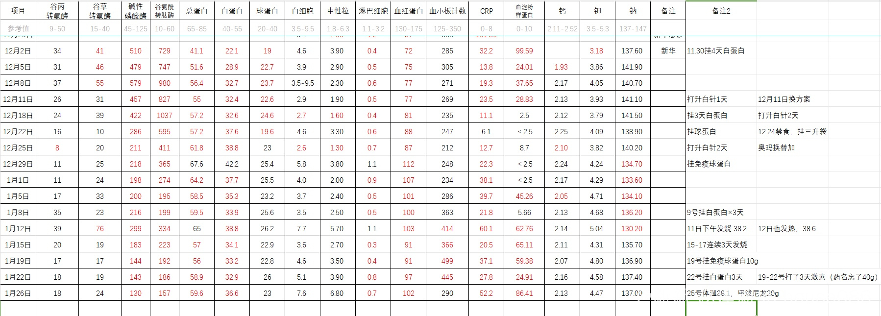 1月19日 免疫球蛋白2560 体温37.4 喉咙痛