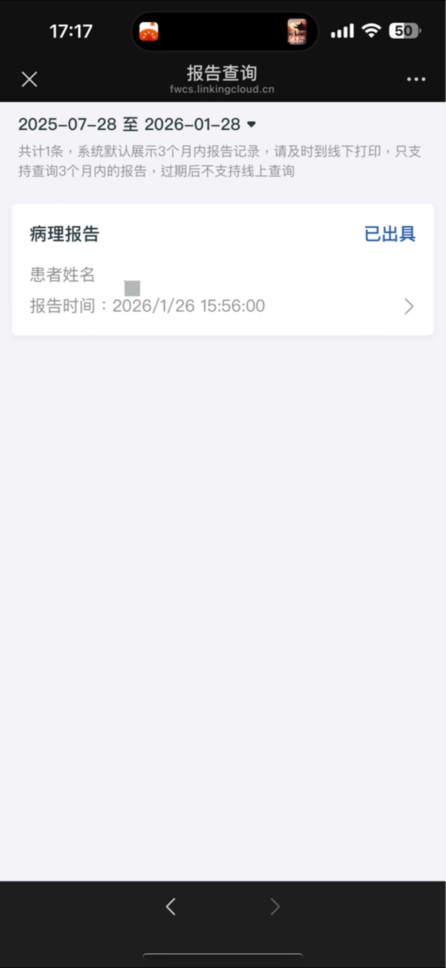 还有就是想问一下除了这个报告以外还会有详细的报告吗,非常奇怪,我在报告查询里可以看到一份,但是在病理会诊那里可以看到有两份报告,都是受理中,时间刚好是和我穿刺的时间对的上,这是不是说明还有一份报告没出呢