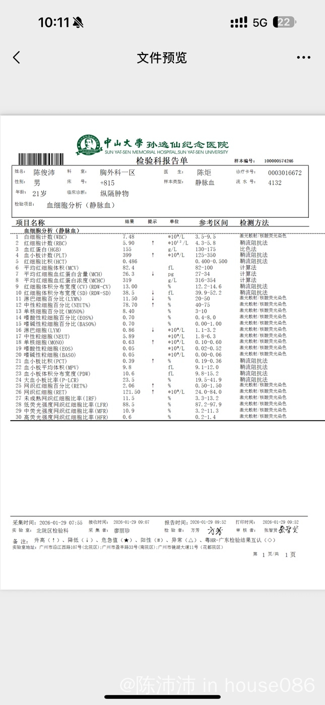 已经做完活检了,等待病理结果,出结果打断马上去中肿做病理会诊然后入院治疗,但目前只做了增强ct 没做petct想问一下大神们对我这个流程有什么建议还有要不要补充petct查看有没有骨髓浸染还是说做骨穿。这是我目前的增强ct报告和血象,看这些能看出来目前肿瘤进程和有没有转移吗?求求各位了,害怕的疯狂备考中