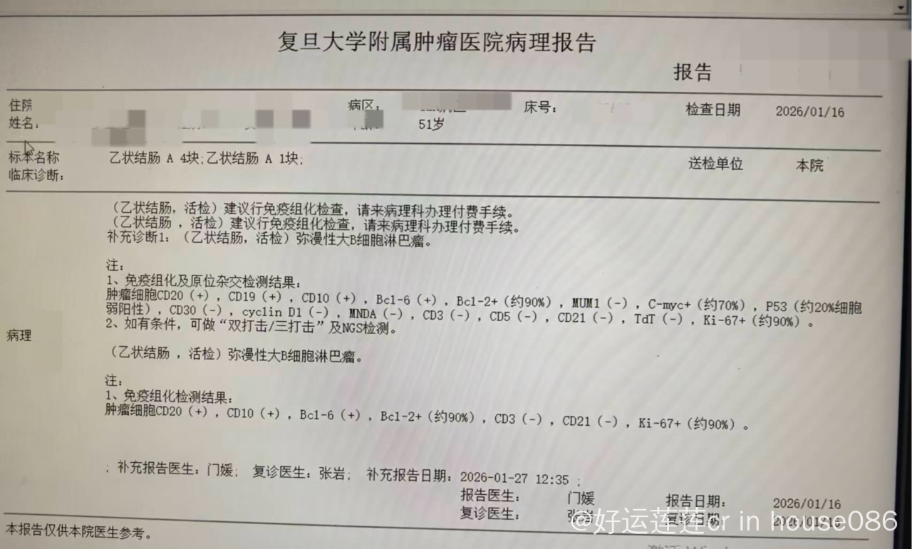 我的妈妈在2025.9.1号颈部确诊滤泡性淋巴瘤3a