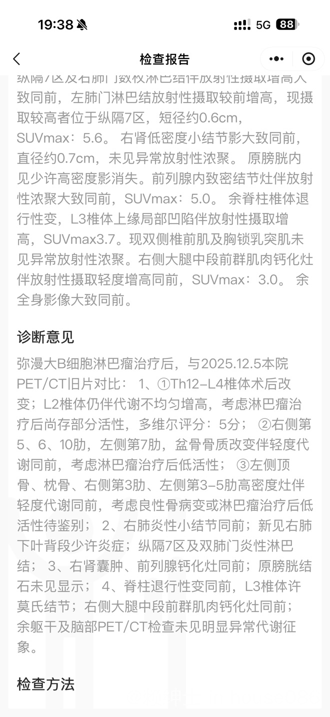 我父亲经过6个疗程的R-chop➕奥布替尼,petct显示仍然残留活性,且仍为L2椎体的手术区域单一病灶,(4疗suv8.5,6疗suv9.3),不知目前该如何选择后续的治疗方案?希望能得到各位的建议,雨丝老师帮忙看看@橙色雨丝 之前有得到您的回复。