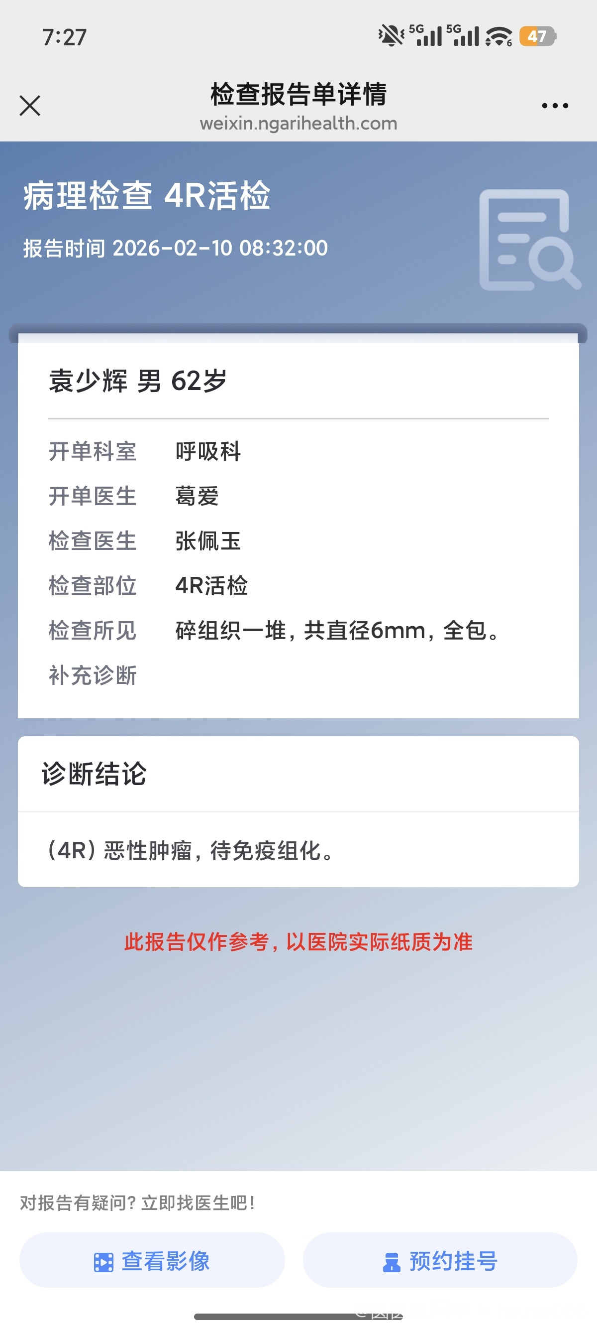 阳光086 发表于 2026-02-12 09:06 等病理结果,确定分型,才能对症下药,加油