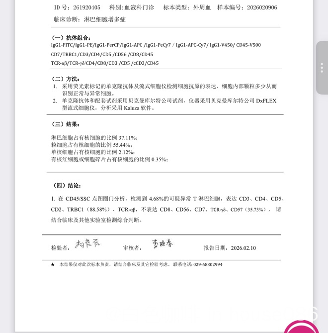 又找了一个医院做了一个外周血流式,结果又不一样,这个需要怎么办啊@橙色雨丝,雨神帮忙看看给点建议