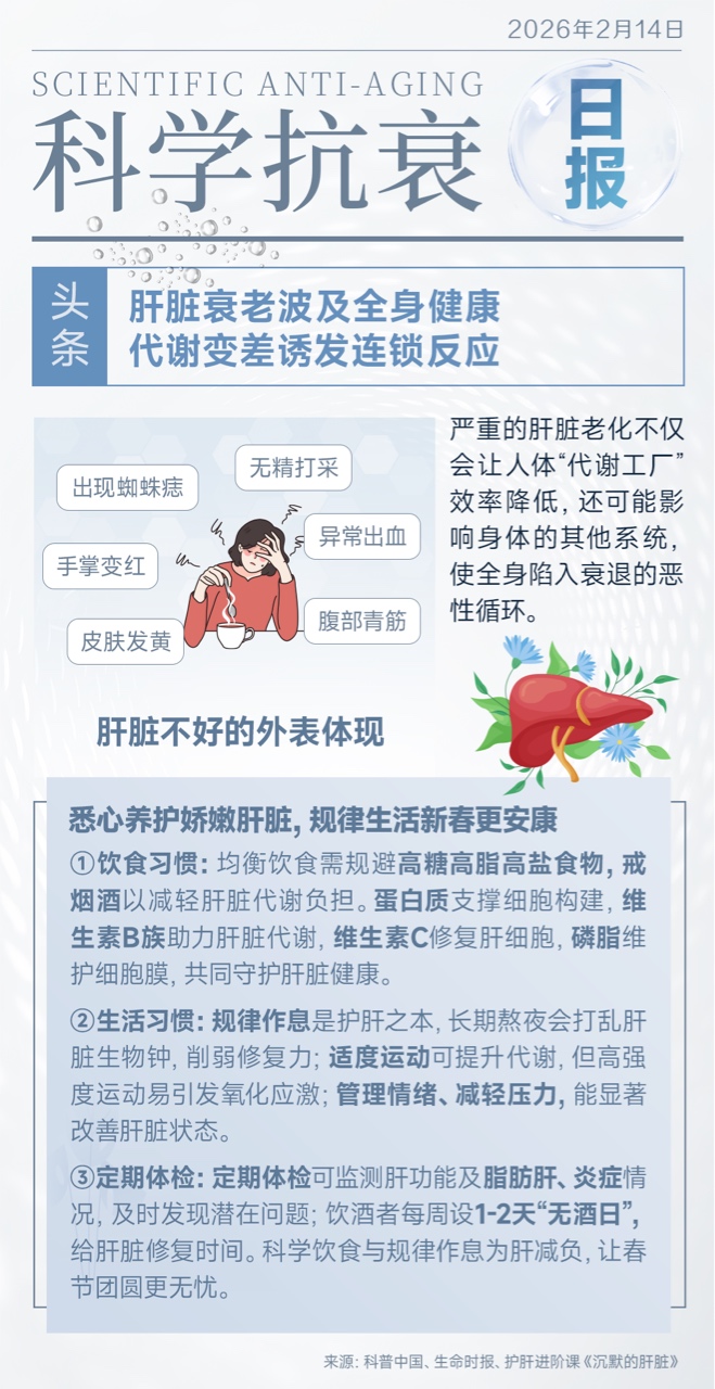 肝脏衰老影响深远,导致代谢变差易诱发全身健康问题,坚持健康作息科学饮食与运动,从调整生活方式开始维护肝脏健康。