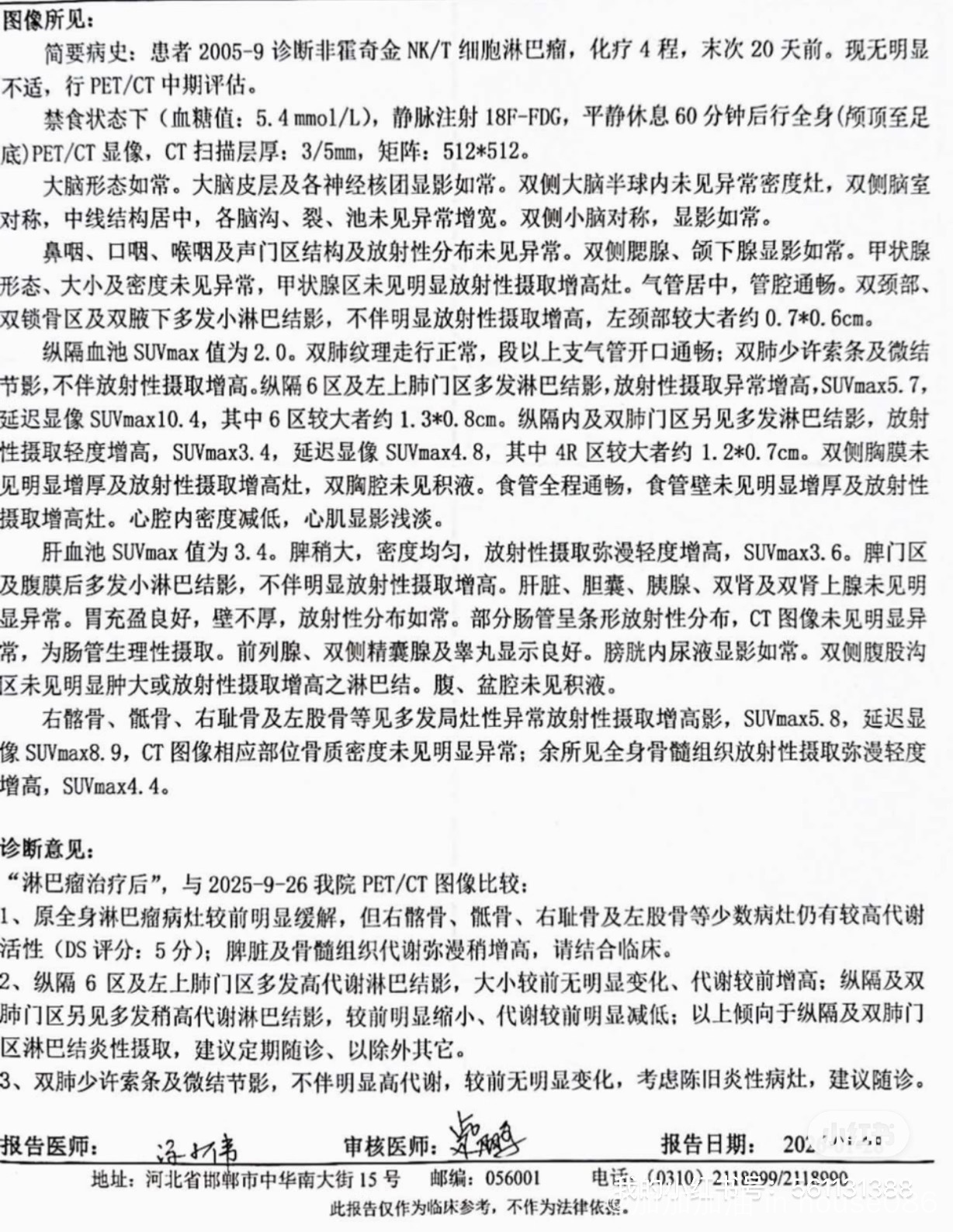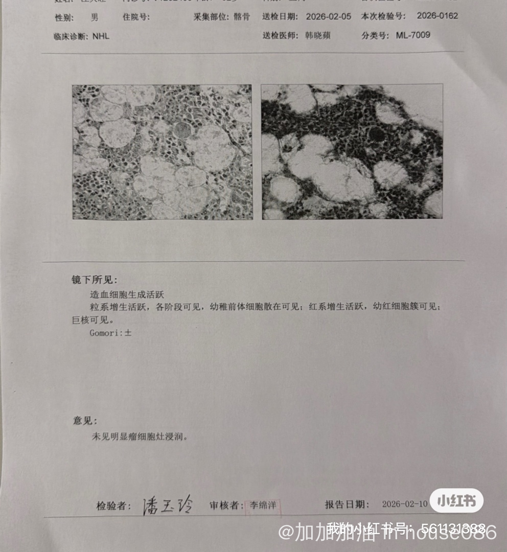 父亲确诊结内NKT淋巴瘤3期B,1月9日完成了4次P-GEMOX方案化疗。1月27日进行中期评估时,发现骨盆部位的代谢评分很高。我们专程去北京找专家会诊,专家建议重点评估骨盆情况,随后我们做了骨穿等一系列检查。