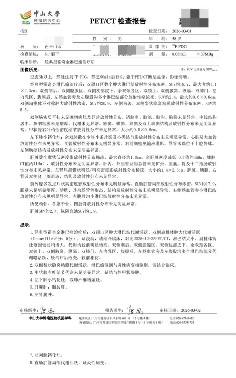 霍奇金混细3期,用的方案是pd-1+avd,前四疗因为贫血有两次(2和3)没用pd-1,后面恢复了,血相最近也还可以。不过最近pd-1又换了个厂牌,从替雷换成了派安普利。4疗结果不太好,希望各位大神能给点建议,谢谢!@橙色雨丝 雨丝大神有空可以给点建议,谢谢!