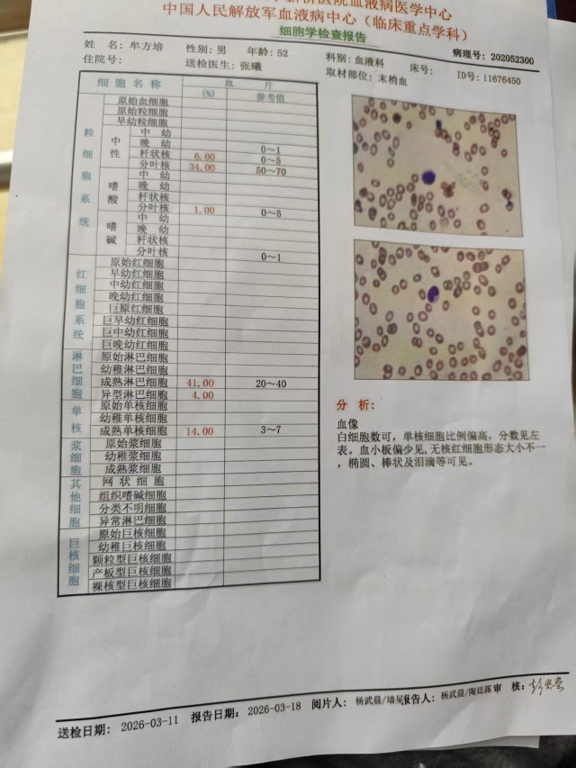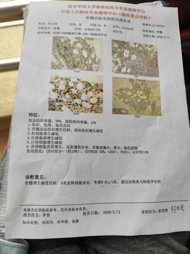 今天骨髓检查确诊后发现是白血病,经历了弥漫大B十几次化疗,然后中枢侵犯商业cart后,现在又转为白血病 ...