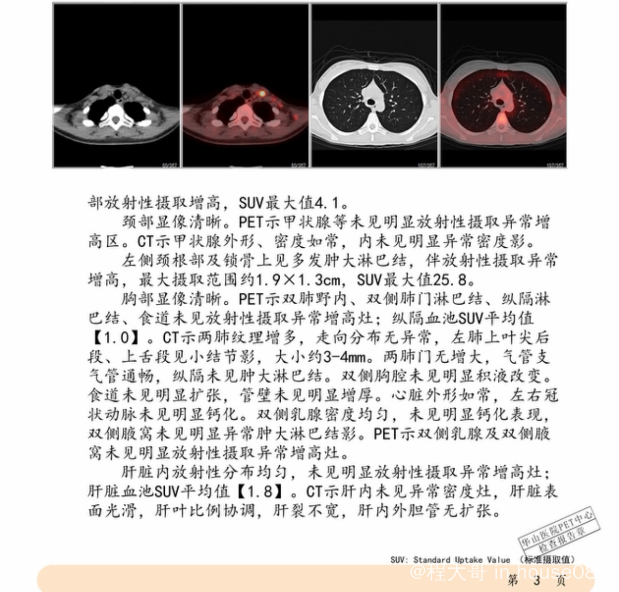 12月初上海华山住院活检,先做了pet ct确定活检位置,pet报脖子锁骨处suv25,淋巴瘤高风险。