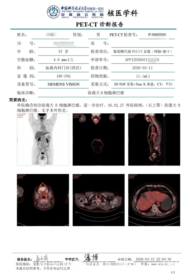 确诊了弥漫大B细胞淋巴瘤,昨天做的PETCT结果已经出来了,求解读!医生让周一过去看怎么用药,有可能还要做个骨穿