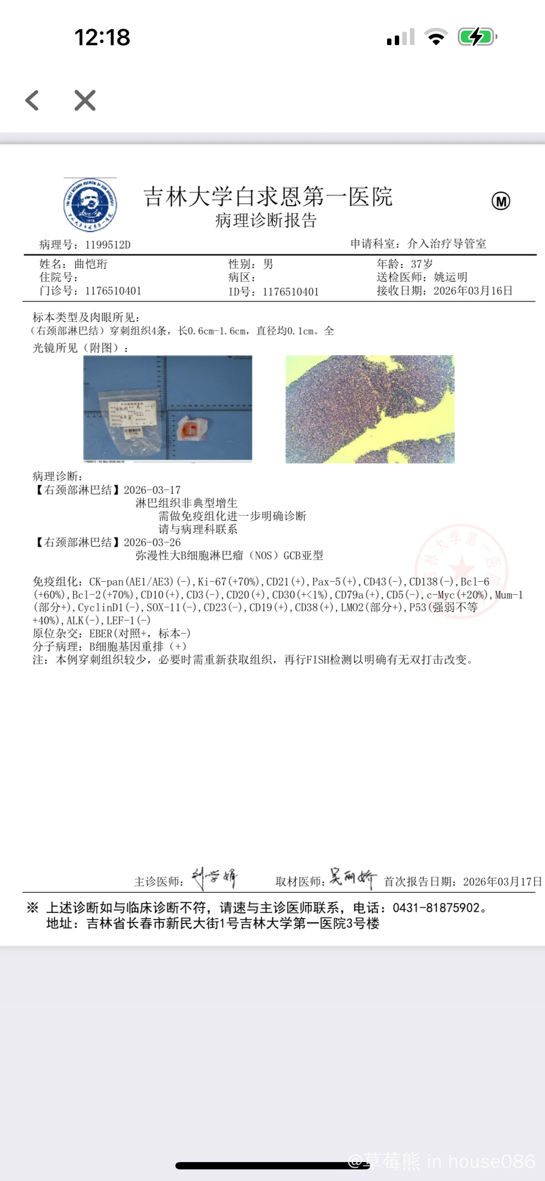 病理出结果了,弥漫大B细胞淋巴瘤,生发中心来源