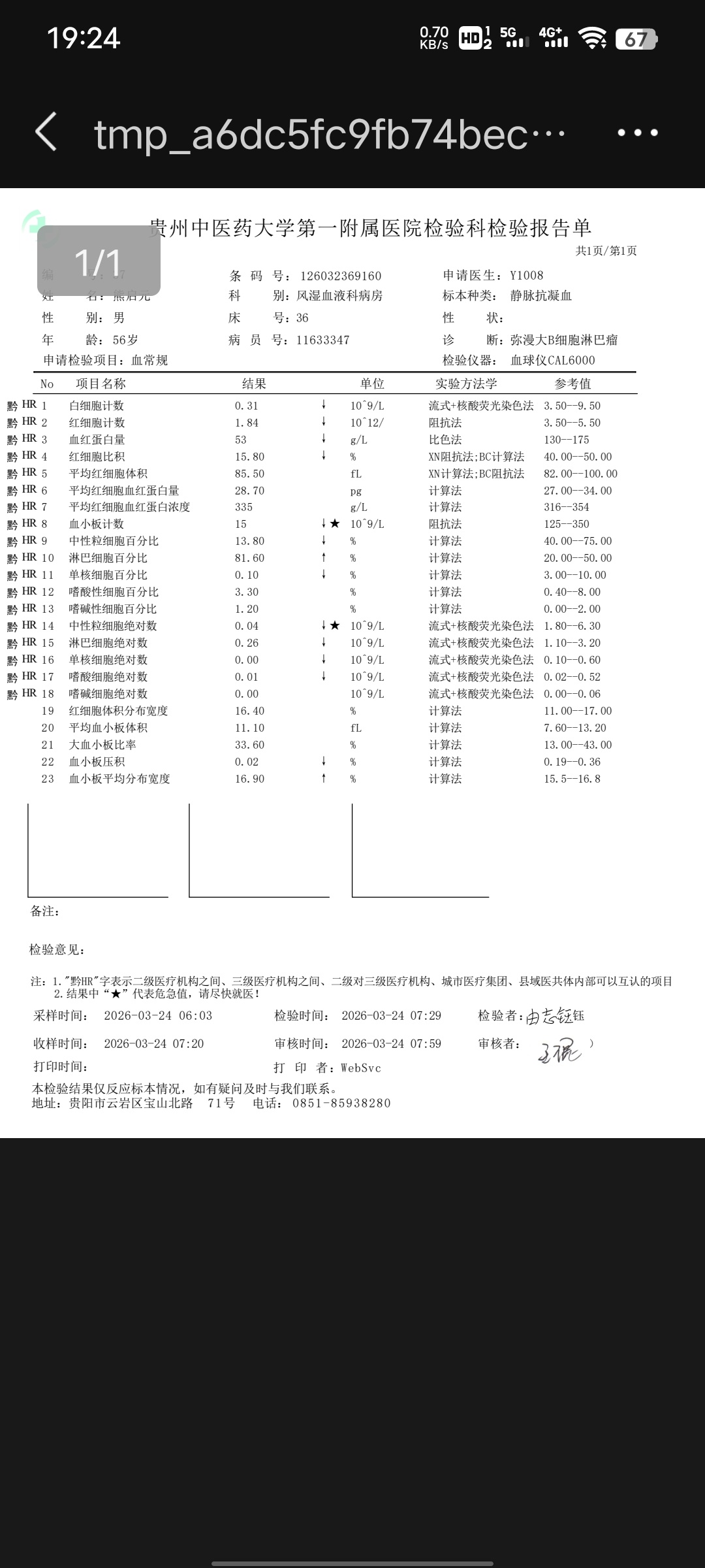 三、血常规(极重度异常)