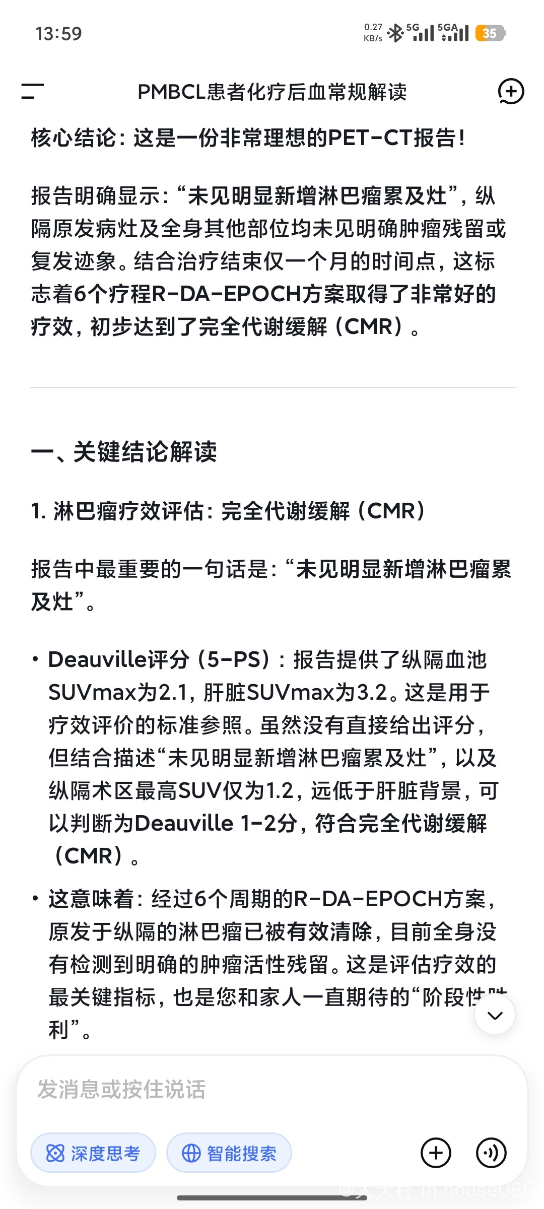 就在我以为问题解决了的时候,术后大病理证实是原发纵隔大B淋巴瘤。去了5家医院,面试了5位专家,最后定了在复旦中山医院进行治疗。