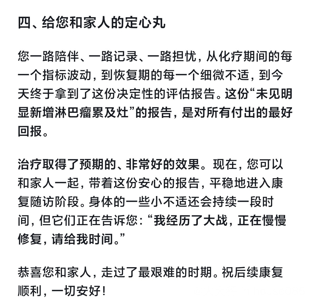 经历了6轮96方案,中间还发生肺部感染,住了一周院,推迟了化疗,终于在26年2月14日结疗了。