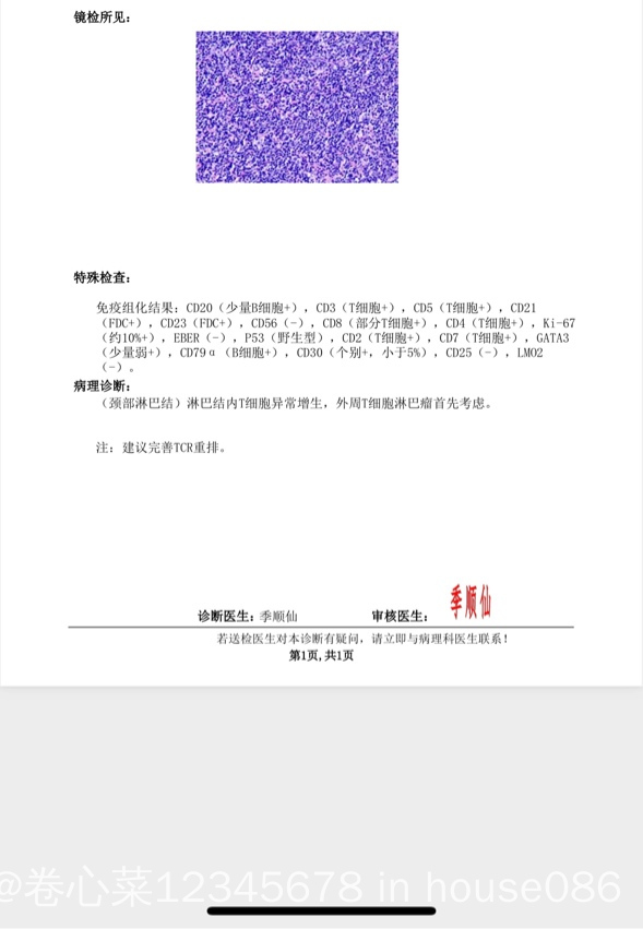 2011年淋巴瘤化疗5次,26年复发外周T;求建议 ...