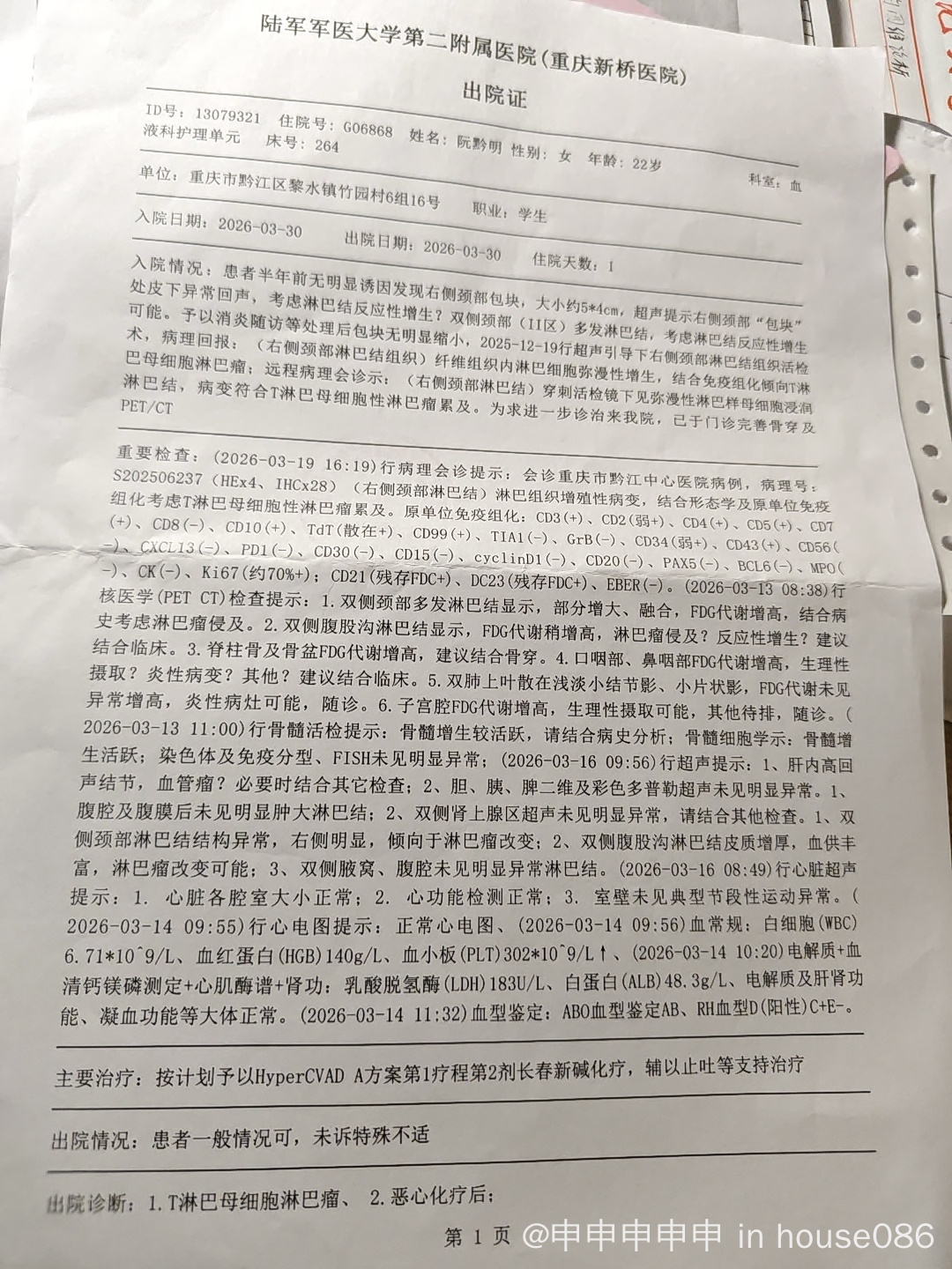 洪飞 发表于 2026-03-31 19:03 腹股沟的后面复查看,如果变化不大,可以排除肿瘤侵犯。不是所有T淋巴母都要异体移植,边走边看吧。