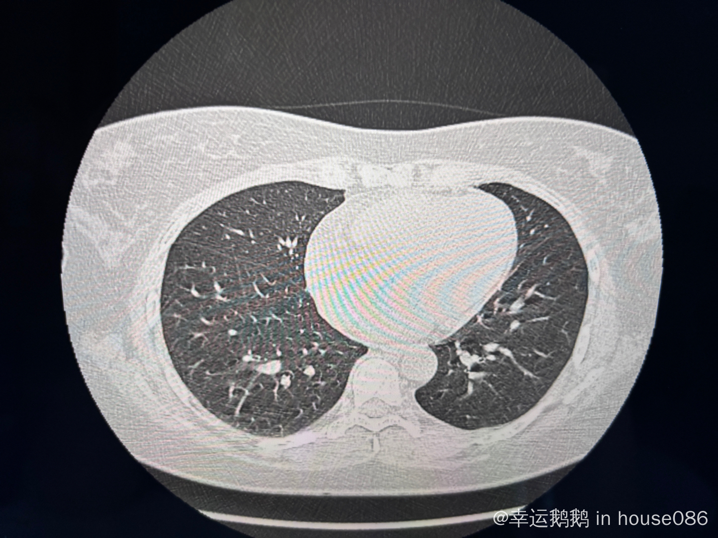 之前我见过其他人的图像,典型特征是那种蜂窝状、毛玻璃样的阴影,只能说你发的这个图像看着不太像,我觉得还要结合一些症状,比如咳嗽,呼吸气短啥的,还是尽快跟医生联系综合的看一下比较妥
