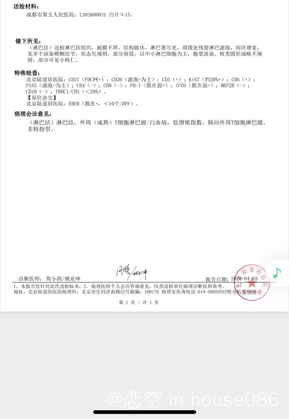 看到外周T的交流群中发现有些误诊的情形 于是担心会不会我们也存在误诊的情形 担心也像其他病友一样八疗之后确认误诊 那么就走了冤枉路