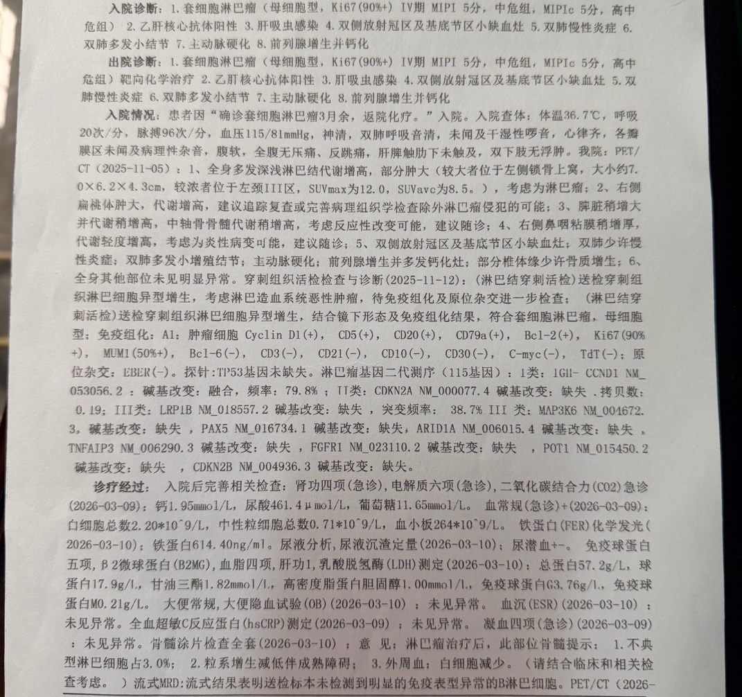 童煌杰 发表于 2026-04-09 22:50 母细胞传统化疗获益不大,更别说移植了,最好是三靶或者四靶联合用药,CD20单抗+维奈克拉+BTK,或者额外+度胺类药物