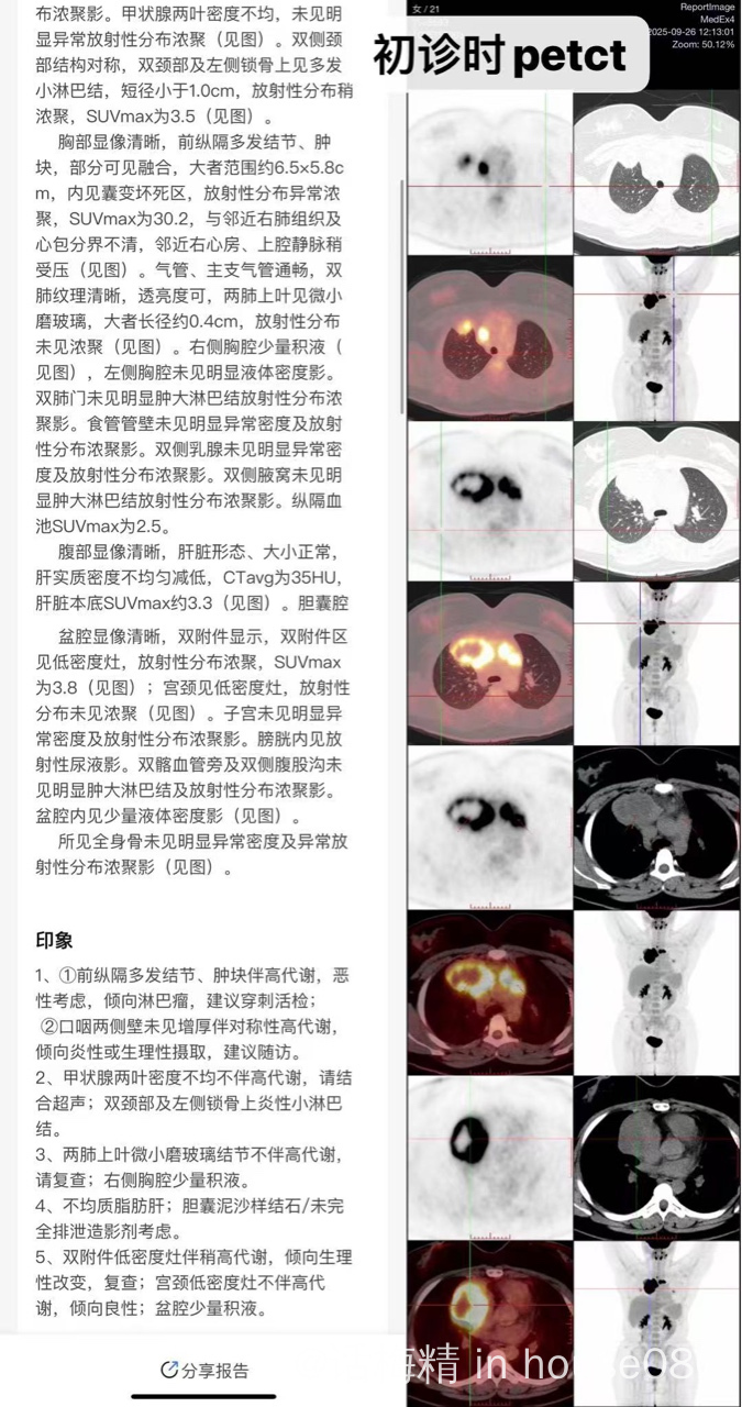 基因含TP53突变,化疗前肿瘤大小:8.1×6.0cm,SUVmax 30.2。